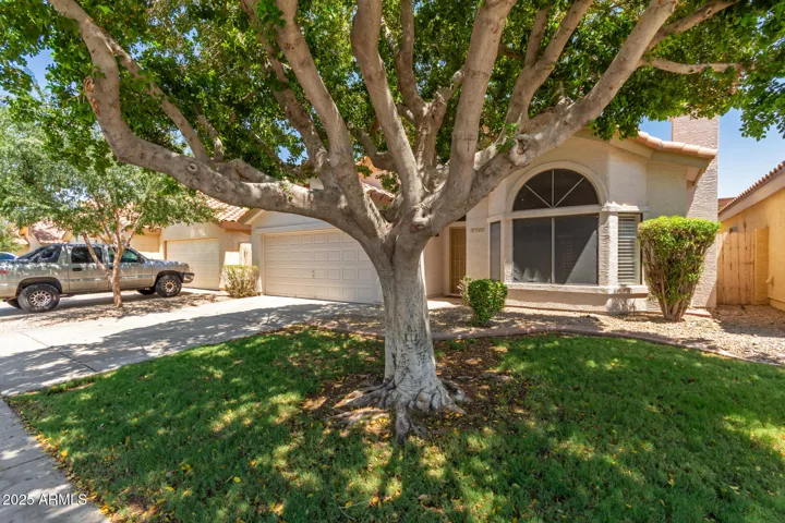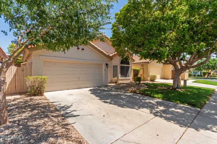Take advantage of this fantastic rental opportunity! This charming 3-bedroom, 2-bath residence welcomes you with a 2-car garage and a mature tree that provides natural shade. Inside, you’ll find a lovely living room with soaring vaulted ceilings, a soothing palette, a bay window, classic plantation shutters, Saltillo tile flooring, and a fireplace for cozy evenings. The eat-in kitchen comes with crisp white cabinetry, SS appliances, and a peninsula with a breakfast bar. The primary bedroom includes an ensuite with double sinks, direct backyard access, and a practical walk-in closet. Imagine serene evenings in the backyard, complete with a covered patio and a manicured lawn for outdoor activities. Don’t miss out on this gem!
