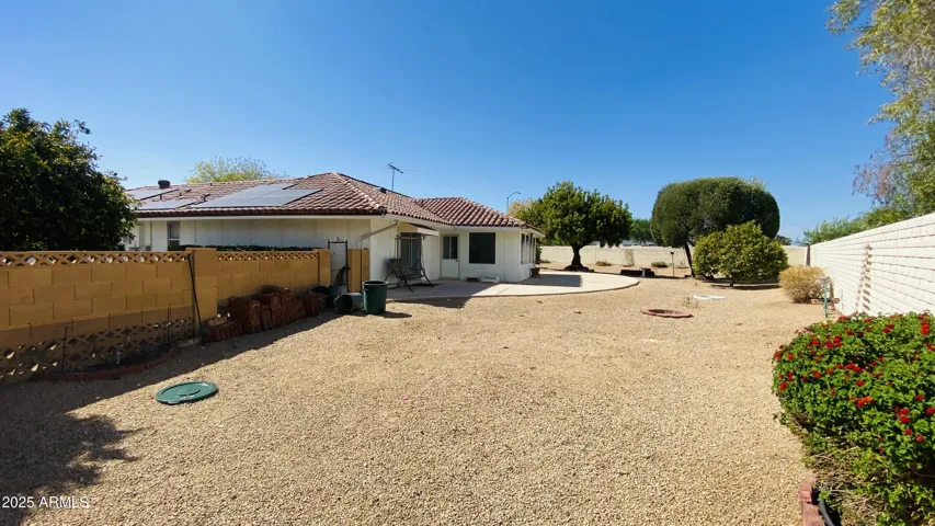 55+-Charming 3-Bedroom, 2-Bathroom Home with Solar in Quiet Cul-de-Sac. This home offers a split floor plan for added privacy and comfort. The spacious master suite includes his-and-her closets and a walk-in bathtub. Enjoy a bright and open living space, freshly painted throughout. The kitchen and dining areas flow seamlessly, making it ideal for everyday living or entertaining. Step outside to a large backyard with an enclosed patio, perfect for gatherings or simply unwinding outdoors. The home also comes equipped with solar panels, helping to keep energy costs low. Located on a peaceful cul-de-sac, this property offers both comfort and convenience.