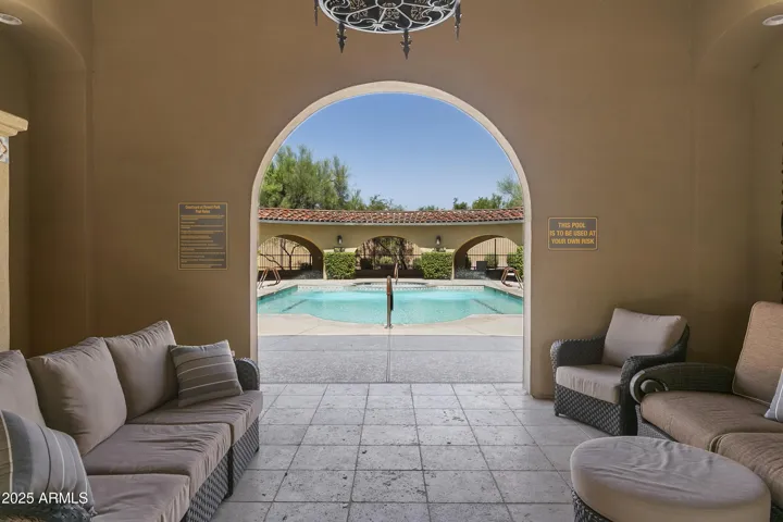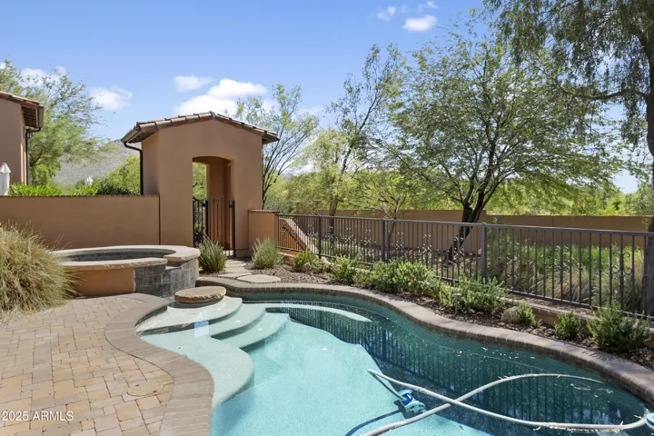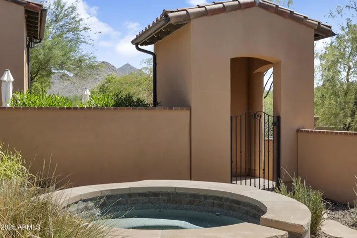 Gorgeous DC Ranch Villa with private pool and spa available for luxurious Scottsdale living. This spectacular open concept, single level property has been rehabbed throughout with striking designer finishes. Inviting floor plan, dramatic beamed ceilings, chefs kitchen, high end appliances, and overall caliber of remodel is jaw dropping. Inspiring master retreat boasts gorgeous bathroom, large custom walk-in closet, and walks out to picturesque outdoor space. This one-of-a-kind home on premiere lot offers guests their own private resort experience with heated pool and spa in backyard oasis that backs to community trail. Quiet, upscale, gated community affords sophisticated lifestyle with dining, hiking, golf, spring training, and world class shopping nearby.