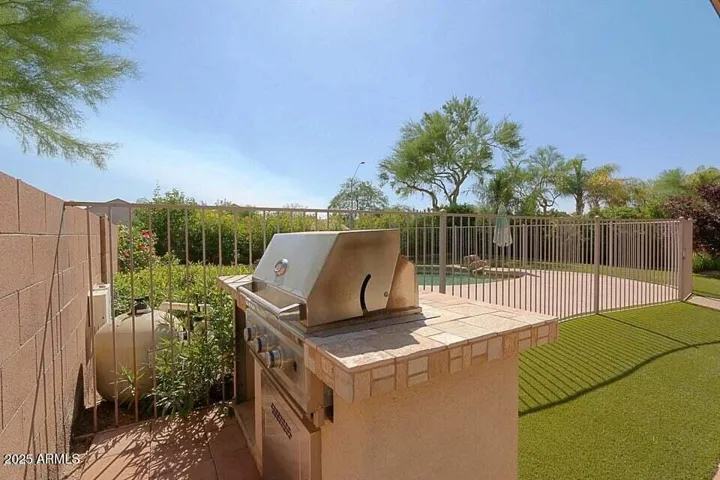 Rare 4 bedroom, 3 bath home Soaring ceilings and lots of natural light coupled with an expansive floor plan make this home very special. modern kitchen includes granite countertops, custom overhead lights, and family sized breakfast bar, eat-in kitchen and walk-in pantry. An adjoining family has easy access to pool. Newer flooring including luxury vinyl plank tile; Large master suite features beautiful flooring, spa tub, walk-in closet. Secondary Bedrooms share 2 full baths, and each have walk in closets and plenty of space. The private back yard adjoins a large desert arroyo and includes pool , as well as a covered patio.