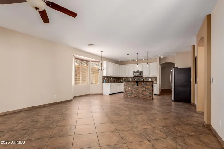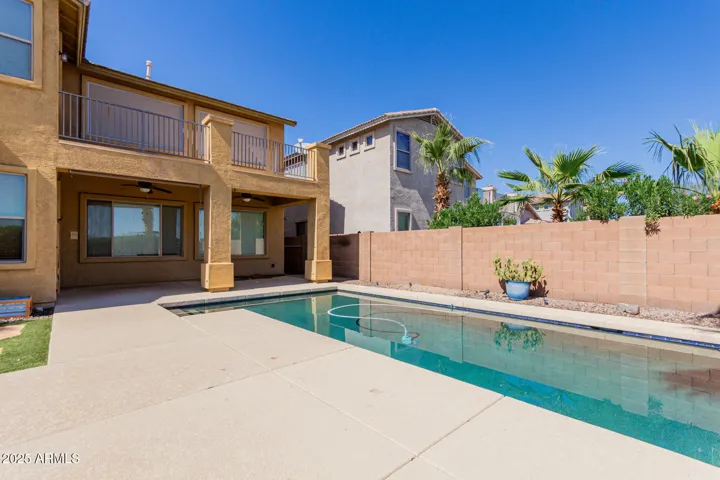 Gorgeous 2,854 SQ FT! 4 bedroom, 3 bath house in Laveen’s Cottonfields! Thoughtful two story floor plan with plenty of multifunctional space. Charming eat-in kitchen with white cabinetry, breakfast bar, and included stainless steel appliances! Open concept living/dining featuring a family room with cozy fireplace and front living room that can also be used as formal dining. Neutral interior with tile and wood like flooring throughout! This home has 4 bedrooms nicely sized bedrooms, and ample closet space. Primary suite features a full bath with walk-in shower, dual vanity sink, and generous sized walk-in closet. Relax, enjoy private balcony with mountain views. Beautiful entertainers backyard with sparkling POOL, view fencing the upcoming GOLF course (project in the process of renovation