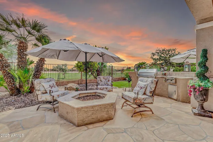 This stunning home offers a perfect blend of modern upgrades and timeless charm, nestled in the highly sought-after SOLERA community! Step inside to discover a beautifully updated Kitchen a true culinary dream with Granite countertops, stainless steel appliances, custom cabinetry, custom kitchen island for both cooking and entertaining. The bathrooms renovated with stylish finishes, Primary suite offers sitting area and oversized walk in closet. Outside, the sparkling heated pool invites you to relax and unwind, offering a private oasis for enjoyment year-round. With meticulous attention to detail throughout, this home is the ideal for those seeking comfort and luxury. Golf Course Fairway #5, Beautiful Sunrise over the San Tan Mountain!Immaculately cared for home. NEW ROOF 2025!
