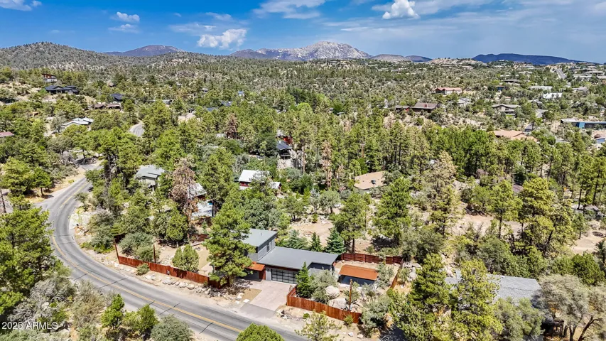 Welcome home to this custom modern build—where bold architecture, refined comfort, and unmatched natural beauty come together. Tucked into a secluded mountain setting just minutes from downtown Prescott, this like-new residence offers the perfect blend of privacy and proximity—only minutes from the area’s best hiking, dining, and entertainment. Located on iconic Thumb Butte Road, the property offers instant access to hiking and biking trails, with breathtaking views of Thumb Butte and sweeping mountain and tree-filled vistas from nearly every window. Inside, the main level features an open-concept layout with soaring ceilings and wide-plank luxury vinyl flooring. The chef’s kitchen is a true showpiece highlighted by brand-new stainless steel appliances, natural granite countertops, a bold waterfall-edge island, and a spacious walk-in pantry. The adjoining dining and living areas center around a gas fireplace and large picture windows that perfectly frame Thumb Butte. Completing the main level is a stylish half bath, a spacious laundry room, and an oversized two-car garage with epoxy flooring and a workshop area with direct backyard access, along with fresh interior paint and stunning designer lighting that create a crisp, move-in-ready feel. Upstairs, two private bedroom suites each feature walk-in closets and spa-like en-suite baths with walk-in showers, quartz countertops, and elevated finishesideal for guests or retreat-style livingwith beautiful views from every window. Set on a fully fenced, oversized lot, the outdoor spaces are designed for year-round enjoyment, featuring fire pits, curated seating areas, and a large covered patio ideal for entertaining. Whether sipping coffee on a quiet morning or gathering around the fire with friends, this setting offers the perfect backdrop for lasting memories in the cool Prescott pinesall while ending the day with breathtaking, glowing sunsets. It’s rare to find a property with this level of privacy, natural beauty, and convenience to downtown Prescott. An entertainer’s dream and a one-of-a-kind opportunity in Prescott’s high-country marketwhere luxury design meets an unbeatable location and serene mountain lifestyle. Whether you’re searching for a full-time residence, a weekend getaway, or an investment in one of Arizona’s most desirable mountain towns, this home offers flexibility and broad appeal. Come see it in person to fully appreciate everything this extraordinary property has to offer!