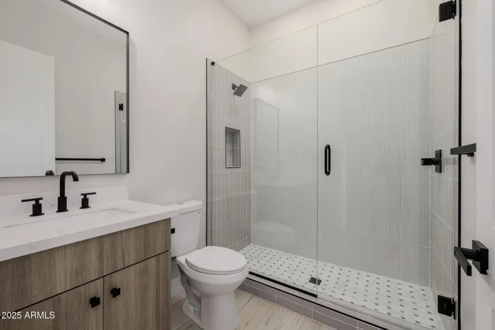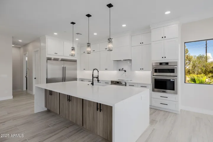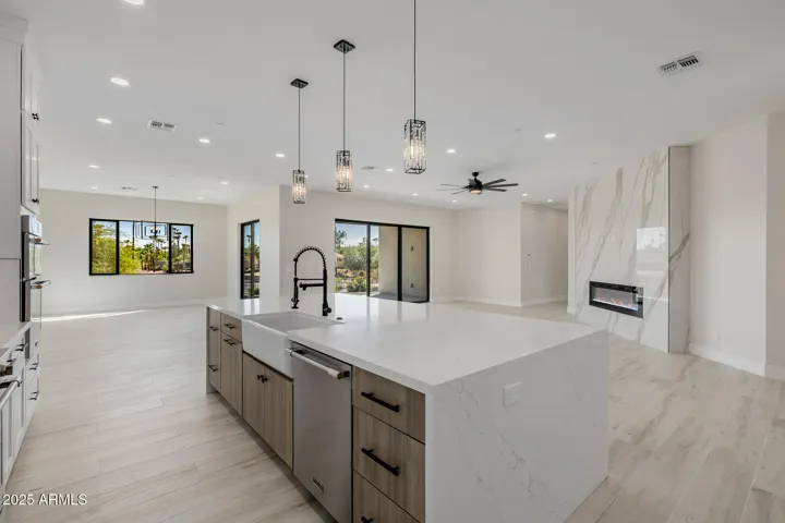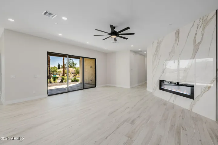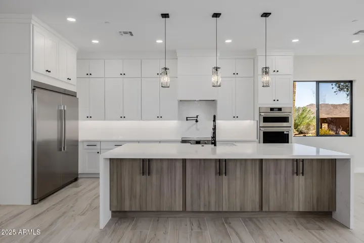 Absolutely stunning, completely renovated home on a premium 1/3-acre corner lot in Fountain Hills with incredible mountain views! Offering 5 bedrooms & 4 baths across 3146 SqFt with an open great room layout and modern finishes throughout. The gourmet kitchen features crisp white shaker cabinets that go up to the ceiling, beautiful quartz countertops, hexagon tile backsplash, high-end stainless-steel appliances including a built-in refrigerator, a convenient pot filler, a farmhouse sink, a spacious walk-in pantry, and a large island with waterfall edge, breakfast bar, and pendant lighting. The great room features an electric fireplace with tile surround, and multi-panel sliding glass doors opening up to the covered patio. The large backyard has block and view fencing and easy-care desert landscaping with artificial turf. Stairs lead up to the balcony, the perfect spot to relax and enjoy the views of the McDowell Mountains. The primary bedroom has a spa-like bath complete with a dual sink vanity, tiled shower with rain shower head, a freestanding soaking tub, and a walk-in closet. Other features include a 3-car garage with access into a spacious rec room/guest suite with private bath, and much more!