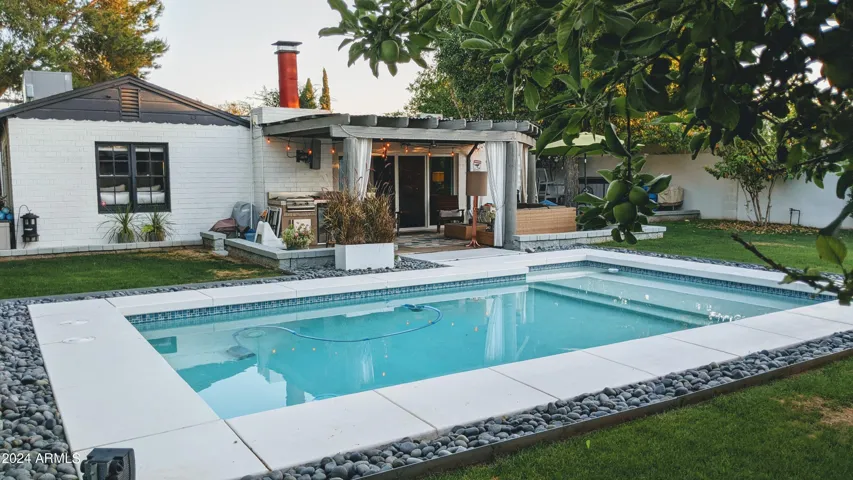 Urban convenience in this updated ranch home in the heart of Midtown Phoenix. Featuring 2 bedrooms, 1 bath plus den, this home sits on a spacious irrigated lot with lush grass and great curb appeal. Hand-scraped acacia wood floors flow throughout, and every detail has been thoughtfully finished. The backyard is an entertainer’s dream with a sparkling pool, outdoor kitchen, covered patio, and grassy area. Just one block from Central Avenue and the light rail, and within walking distance to top restaurants, the location is unbeatable. Rent is $2,800/month plus $380 for pool and landscaping maintenance.