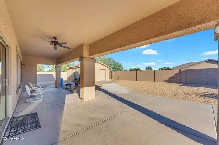 Welcome to a home that has been cherished and meticulously maintained by its original owners—a place where pride of ownership shines through every detail. Perfectly situated on a generous corner lot of nearly a third of an acre, this property enjoys a prime location across from a greenbelt in the highly desirable Savannah community. Inside, the thoughtfully designed split floor plan offers both privacy and flow. The home has been beautifully updated with newly installed flooring, fresh baseboards, and freshly painted cabinets accented with satin nickel hardware. At the heart of the home, the spacious kitchen is built for gathering, featuring a large island, new Quartz countertops, and a walk-in pantry that makes both daily living and entertaining a joy. Just off the main living area, a flex room adapts easily to your lifestyleit can serve as an office, a fourth bedroom, or even a game room. The oversized owner’s suite feels like a retreat, offering the perfect balance of comfort and function. Two walk-in closets and a spacious En Suite bath provide both luxury and practicality, making it a space you’ll look forward to unwinding in at the end of each day. Two newer A/C units, serviced every six months with care, along with OWNED SOLAR panels on a grandfathered APS plan, ensure reliable comfort and lasting savings year-round.