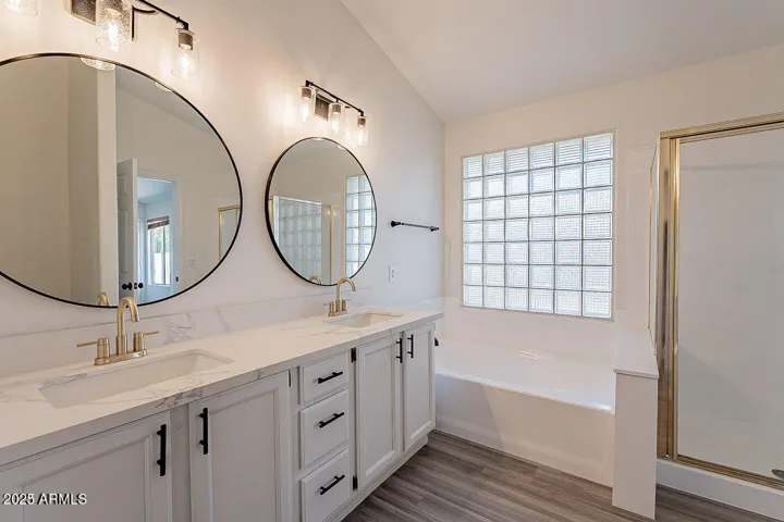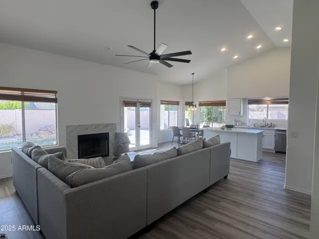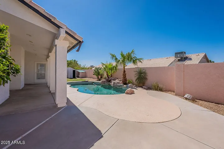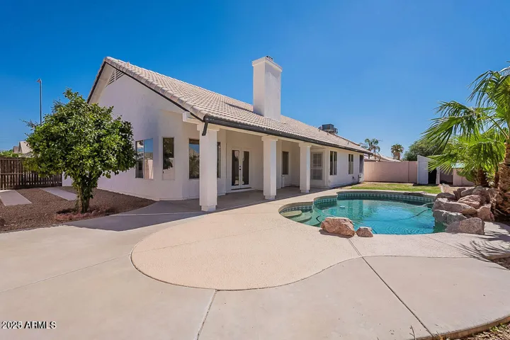 Welcome to this FURNISHED updated single-level pool home in the desirable Stoneridge neighborhood! This gem boasts a fresh and modern look with NEW exterior and interior paint, along with NEW flooring throughout in neutral tones that complement the open floorplan and high ceilings, allowing plenty of natural light to flood in. The spacious kitchen is a chef’s dream, featuring NEW quartz countertops, stainless steel appliances, freshly refinished cabinets, and a large island for all your culinary adventures. Step outside to your backyard oasis, complete with a covered patio, a private pool perfect for cooling off in the Arizona sun, and ample space for your personal landscaping touches. With the added convenience of being just minutes away from Red Mountain Park, the 202 freeway