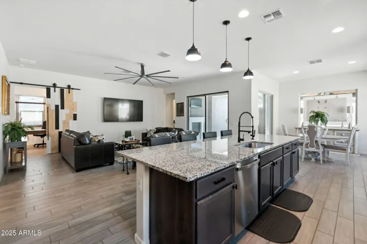 Built in 2020, this stunning single-level home features 3 bedrooms, 2.5 baths, plus a private office and 2-car extended length 24 ft garage, big enough for your truck! Inside, enjoy upgraded wood-look tile flooring, a gourmet kitchen with a large granite island, designer backsplash, wall oven, and hood. The luxurious primary suite boasts a walk-in tiled shower. Outdoors, entertain in style with a covered patio, pergola, built-in BBQ and bar, and a serene fountain. A perfect blend of modern upgrades and resort-style living! Less than 10 minute drive to shopping, dining and entertainment in the Village at Prasada!