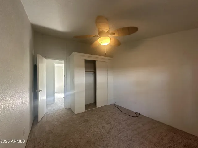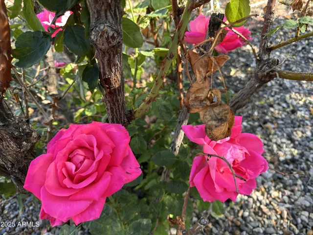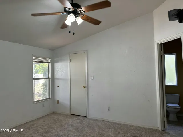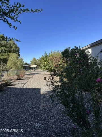 An oasis in Arizona! Charming 3 bedrooms and 2 baths with cathedral ceilings, split bedroom plan, garden tub in main bathroom. Freshly carpeted! Outside you get a nice shady deck, A GARAGE, a chain-link fenced and cross-fenced garden and yard full of fruit and flowers, and a storage shed/greenhouse! I saw an apricot tree, a peach tree, 2 pear trees, and I think one was a cherry. There are herbs in the securely fenced garden, plus flowers and some annual veggies.