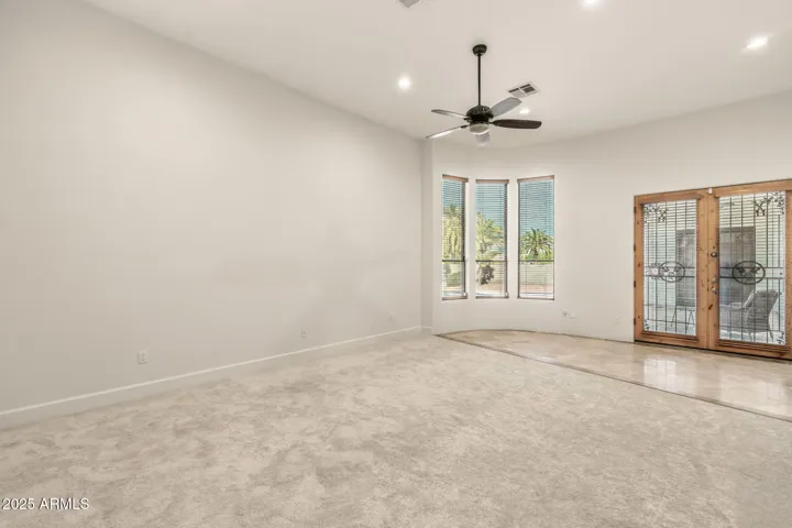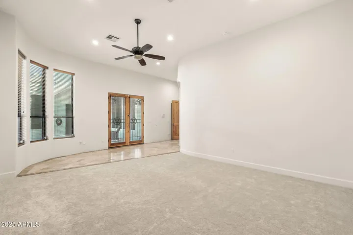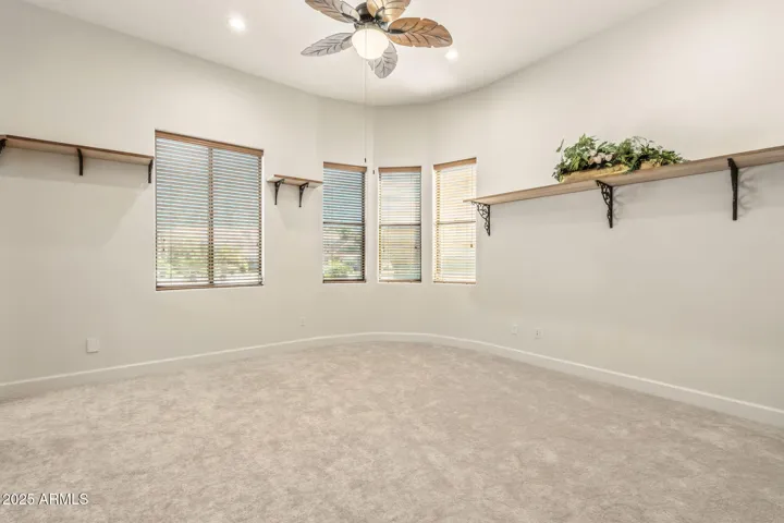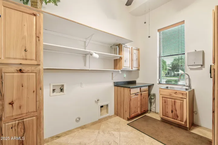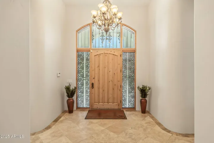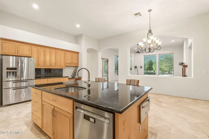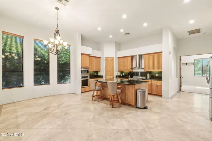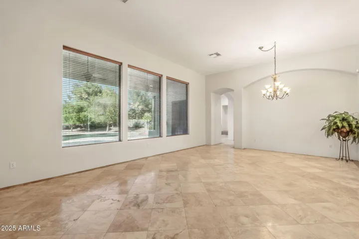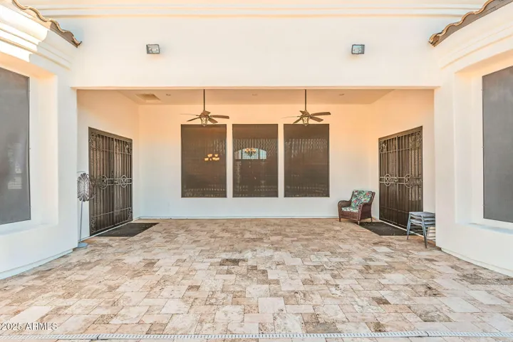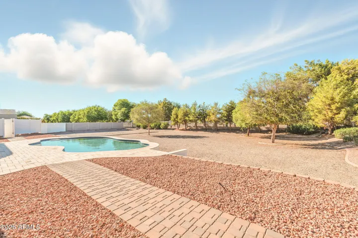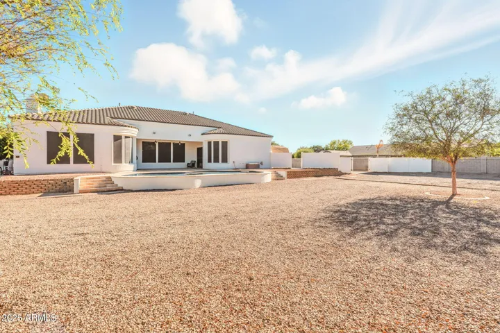 Welcome Home! Exceptional location in Queen Creek, AZ. This spacious 4104sqft single-story custom home offers Arizona living both inside and out. Located on nearly one acre in the highly sought-after Circle G at Queen Creek community, the property benefits from close proximity to top-rated schools, parks, QC marketplace, shopping centers, restaurants, theaters, hospital and a welcoming neighborhood atmosphere that has made Queen Creek one of Arizona’s most desirable areas over the past decade. The split floor plan ensures privacy, with two additional bedrooms and a game room featuring a convenient Jack and Jill bathroom. A large living room and dining area welcome guests near the entrance with large windows that oversee the large backyard and pool with custom travertine tile around pool and patio. Wide hallways with soaring 12-foot ceilings throughout create a sense of openness and comfort. The kitchen is equipped with elegant granite countertops, stainless-steel appliances, Alder wood cabinetry, and diagonally laid travertine tile, making it perfect for both everyday living and entertaining. A spacious family room, game room, and laundry room add versatility for all lifestyles. The garage is a standout feature measuring 31′ by 41′ (over 1,200 square feet) with 12-foot ceilings, epoxy flooring, and an 8-foot-high door, it can easily accommodate up to six cars with stackers. Wall cabinets and shelves provide ample storage. Additional amenities include an extra side garage, shed, and a paved area next to the extended RV sliding gate, offering flexibility for RV parking, storage, or future expansion. The corner lot provides endless opportunities, such as adding a large guest house or additional RV garage (pending permit and floor plan). Circle G offers horse privileges, scenic trails and offers city irrigation throughout the community, further enhancing the outdoor lifestyle.