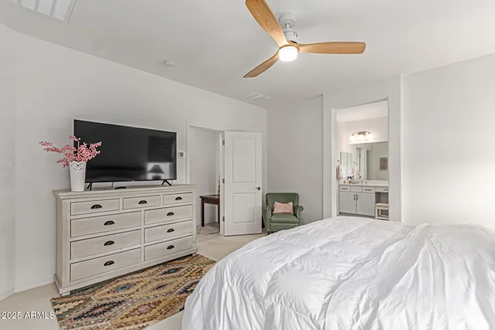 Welcome to this stunning single-story gem in Tierra Montana! Barely 2 years young and packed with upgrades, this 4-bedroom, 3-bathroom beauty is move-in ready and full of charm. Inside, you’ll find upgraded carpet in the bedrooms, stylish tile surrounds in every shower, plantation shutters, and sleek tile floors throughout. The great room is perfect for gatherings, while the gourmet kitchen shines with white cabinetry, stainless steel appliances, a gas cooktop, and upgraded counters that beg to be shown off. Unwind in the main bedroom, which displays a private bathroom with double sinks and a walk-in closet. Out back, enjoy a covered patio and spacious turf yard for play or relaxation. Plus, you’re just minutes from the freeway for easy commuting. This one is a must-own!