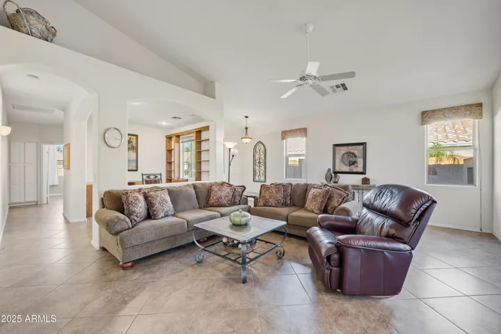 This freshly painted home instantly feels inviting with its soaring cathedral ceilings & open floor plan designed for both relaxation and entertaining. The hidden built-in bar w/wine refrigerator and den w/custom bookcases & desk add style and function, while the spacious master suite offers a large walk-in closet & dual sinks for everyday comfort. Guests will love the convenient Murphy bed in the spare room, and the garage provides extra storage with built-in cabinets.