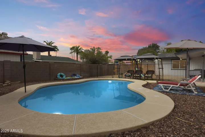 Spacious Living in a Prime Location with No HOA! This 5-bed, 2.5-bath home offers 2,208 sq ft of timeless charm with modern comfort, set on a large lot with solar! The open layout features smooth tile flooring, neutral walls, and a bright family room with a cozy wood-burning fireplace and French doors. The kitchen showcases granite counters, a pantry, island, and breakfast bar. Outdoors, enjoy a covered patio overlooking a low-maintenance yard with a fenced pool and a workshop/craft room with backyard views. Conveniently located near grocery stores, restaurants, Starbucks, and entertainment, with easy access to the 202, 101, and 60 freeways! Seller will consider paying off solar with a strong offer!