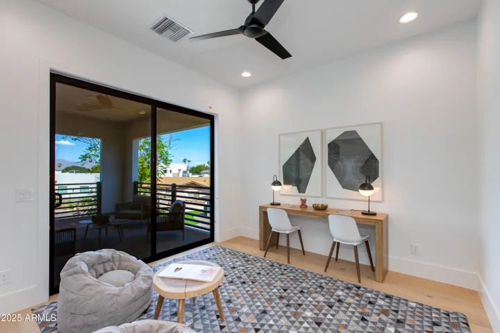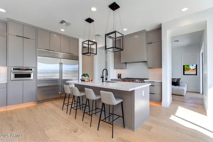 Thomas James Homes presents a rare chance to acquire a brand-new, move-in ready in a quiet cul-de-sac in one of Scottsdale’s up & coming neighborhoods. Just minutes from Old Town, this 5-bedroom, 4.5-bath, 3-car garage modern home is positioned for long-term value. The first floor offers highly desirable amenities for families and guests alike: an open-concept layout, private office for those remote workers, spacious game room, ensuite guest room, and seamless indoor-outdoor flow. Outdoor living is a major draw with a pool, built-in BBQ, and fire-pit ideal for Scottsdale’s year-round lifestyle. Upstairs, a large covered terrace captures mountain views, while a loft and flex space provide versatility for work or leisure. Four additional bedrooms, a luxurious primary suite, perfect for large families, group stays, or executive rentals. With its unbeatable location near Old Town’s dining, shopping, TPC and entertainment, plus modern construction requiring minimal maintenance, this home is a standout investment in Scottsdale’s thriving housing.