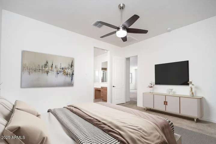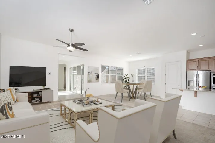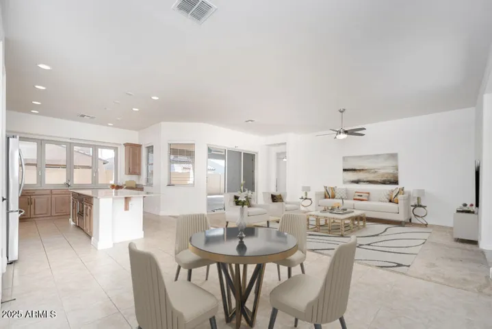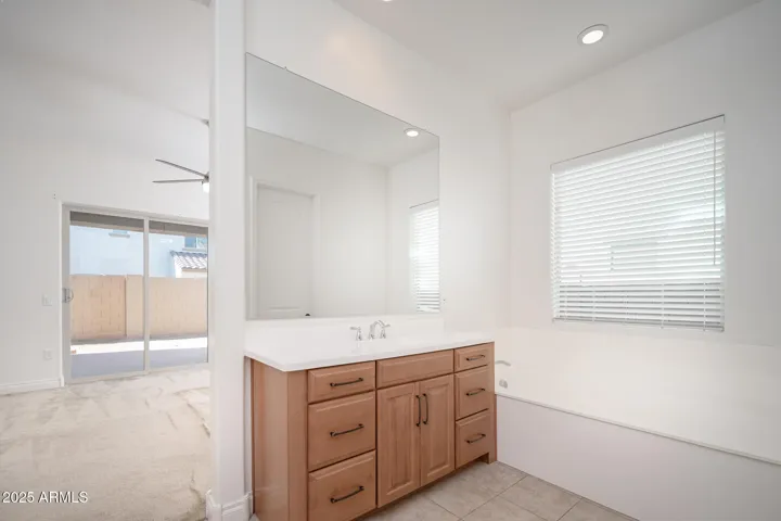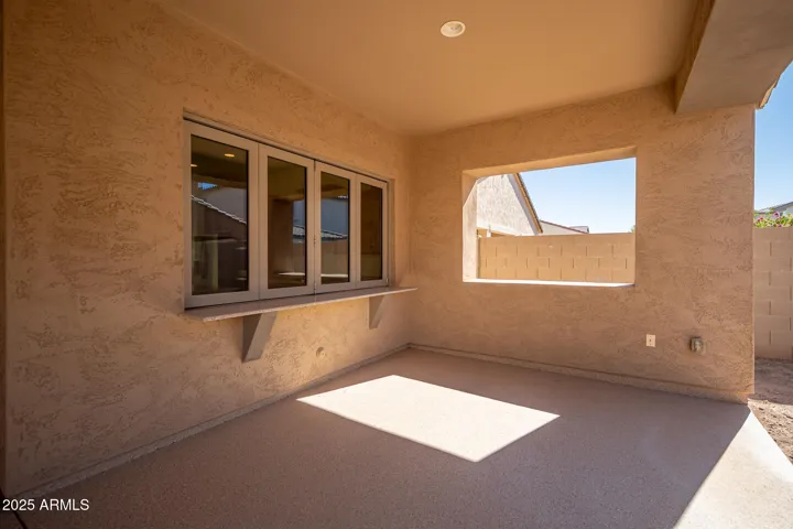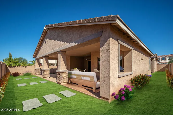 This home has it all! Quaint pavered side courtyard off entry. Great room is open to the gourmet kitchen & dining area w/ 8′ multi-sliding doors to the covered patio. Kitchen features a massive island w/ built-in microwave, pull-out shelving & pre-wiring for pendant lights. Tons of counter space & solid wood cabinets. Double ovens. Bifold windows open to patio. Gas cooktop. Primary bedroom off great room with another 8′ multi-sliding door to patio. Primary bath w/ 2 vanities + soaking tub + shower w/ seat & a large walk-in closet. Bedroom & bathroom 2 are down a separate hallway near laundry room. (gas or electric dryer hookup) Bedrooms #3 & #4 and bathroom #3 are down the front hallway. ALL BEDROOMS w/ walk-in closets. EXPANSIVE covered patio overlooks the blank canvas of your back yard. Covered patio has epoxy coating, ceiling fan & recessed lighting. Gas stub is here for your BBQ. Shelf off bifold kitchen windows make entertaining on the patio a breeze. The yard is your blank slate to create the back yard YOU want.