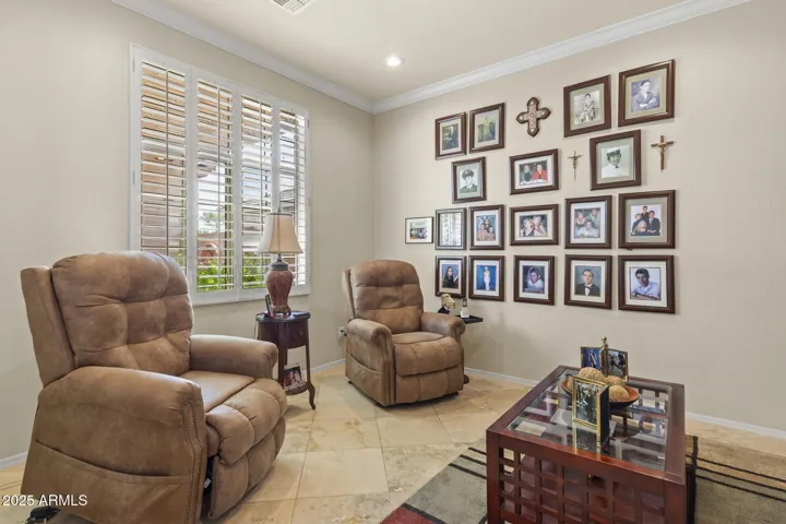 Arizona Traditions, a guard-gated 55+ community, offers golf, pickleball, a community center, fitness, woodworking, baseball, and so much more! This desirable Tapatio model with casita and 3-car garage provides the perfect blend of comfort and function. The main home is 1,962 sq ft, plus a 315 sq ft casita ideal for guests or a private office.