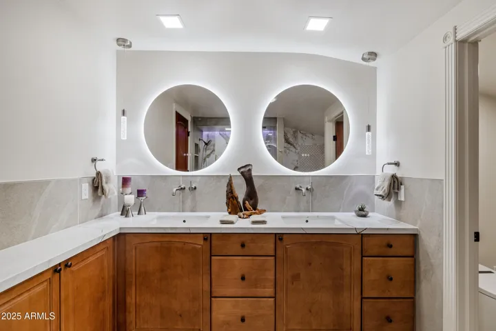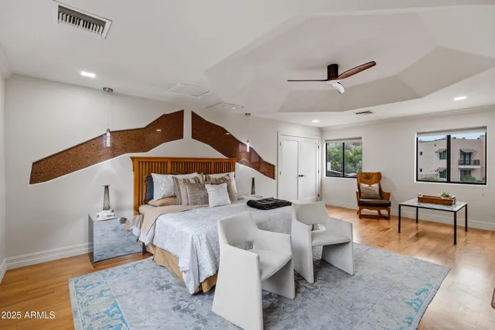 WOW! Pictures do not do this home justice. Quiet Cul de sac in Biltmore Highlands on the slope of Piestewa Peak. Centrally located, 4 minutes to the 51 Freeway, 15 minutes to Sky Harbor, Downtown Phoenix and Scottsdale. A Tri-Level with a Huge Chef’s Gourmet Kitchen, Expanded Spaces, Efficiency, Privacy and Low Maintenance. An Arcadia style elevated Courtyard with Fire Pit sits adjacent to a Secluded Synthetic Turf Back Yard. Bright Split Primary Bedroom with Luxury Bath, and Private Views. MUST SEE DOCUMENT TAB IN MLS FOR COMPLETE LIST OF UPGRADES! Owner/Contractor just Remodeled all Bathrooms, Tile Flooring and added a 3rd Car Garage, all with Epoxy Flooring, new Tankless Water Heater, New Refrigerator and Freezer. Owner attended to every detail. Short Walk to Preserve Trail