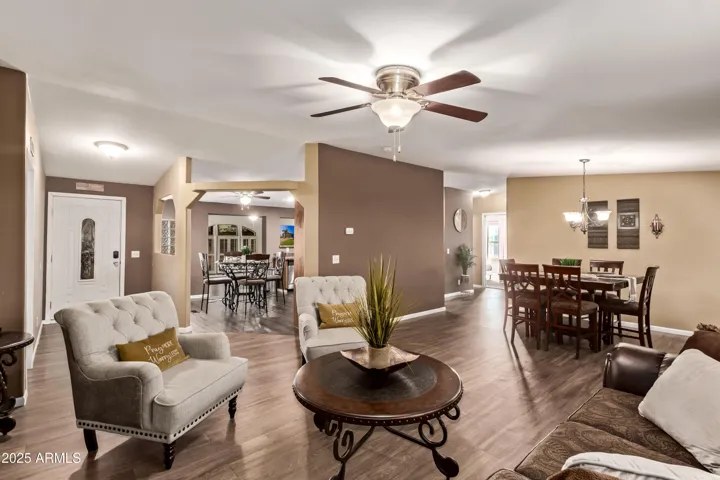 Unique GEM here! Your own piece of Paradise! 2+ACRE Private property with its very own water well! Perfect for all your animals, toys, and dreams! Majestic mountain views, a play area for outdoor fun, fruit & mature trees, chicken coops, storage sheds, and tons of space for crafting your dream oasis or establishing equestrian facilities! From the moment you arrive, you’ll feel the charm & warmth that makes this property truly special. Step inside to nearly 2,500 sqft. of living space, featuring 3 spacious bedrooms, 2 bathrooms, + Great Room with a Wet Bar, perfect for entertaining family & friends! Neutral color palette throughout, plantation shutters, beautiful flooring. Plus, enjoy peace of mind with a new roof installed in 2021.Jump on this opportunity and make it yours today! The expansive outdoor space boasts majestic mountain views, a play area for outdoor fun, storage sheds, and tons of space for crafting your dream oasis or establishing equestrian facilities. Don’t miss out on this one!