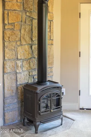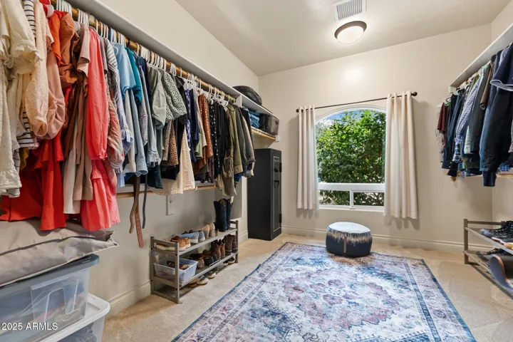 elements is a chef’s dream and the natural stone countertops and custom backsplash are timeless features. Textured walls, natural accents, faux beams are enjoyed in all areas because of the open concept. The Primary Suite with a sitting area has direct access to the covered rear patio. The large walk in shower with a rain shower head, separate water closet and expansive walk in closet truly make this a ”retreat”. The two (2) additional bedrooms are large with walk in closets and