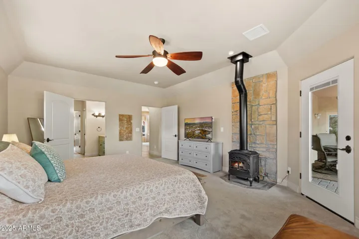 This home is perfect for those who love warm, natural materials and seamless indoor-outdoor living all on one single level with a large level driveway and entry which is very rare for The Ranch at Prescott. With a low HOA of only $215.00 per year this home makes a great second residence and a perfect “lock and leave” with the easy maintenance landscaping.
