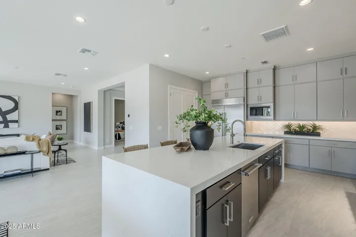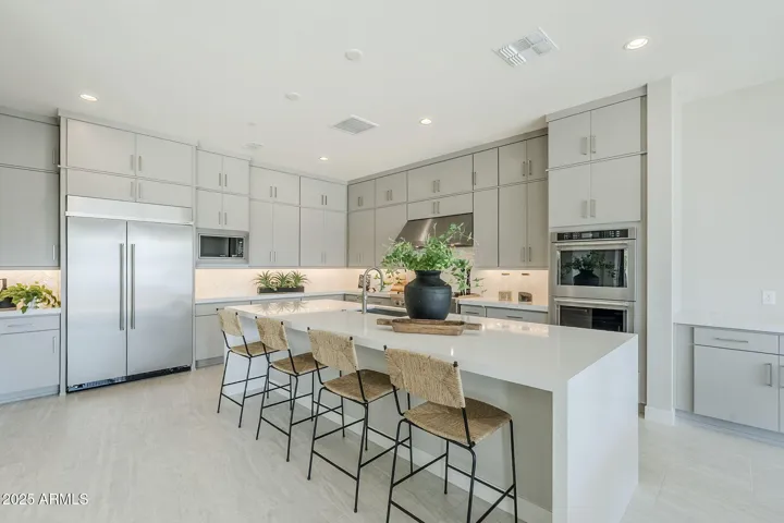 Final Opportunity to make this Gated Community, Caleda in Queen Creek,Home! New Const Home boasts a versaltile split floorplan. Your Primary Bedroom has direct access to the poolsize backyard and your Spa-like Bathroom features a deep soaking Kohler Bathtub, Beach-Entry Shower with Seamless Glass Enclosure and Split Dual Quartz Vanities. Walk in closet complete with custom built-ins and a second door that leads you to your oversized laundry room with upper cabinets & sink. Chef’s Kitchen w/ 48” built in KitchenAid Stainless Fridge, 6 burner gas cooktop w/hood & double convection oven & Marble waterfall Island! Premium interior lot over 10,500sf