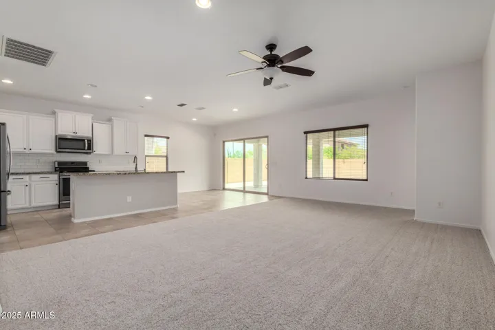 Beautiful home in the highly sought-after master planned community of Fireside at Norterra! The open layout is filled with natural light and designed for comfort with tile, fresh carpet and paint throughout. The stylish kitchen boasts stainless steel appliances, granite counters, subway tile backsplash, white cabinetry, walk-in pantry, and large island with breakfast bar—ideal for family meals. The downstairs primary suite offers a modern barn door, dual sinks, and a walk-in closet, plus a second bedroom and full bath on the main floor. Upstairs, enjoy a versatile loft and two additional bedrooms. Outside, the spacious backyard with covered patio and low-maintenance turf is ready for play and gatherings! Fireside amenities include community center with gym, pools, parks, tennis and more!
