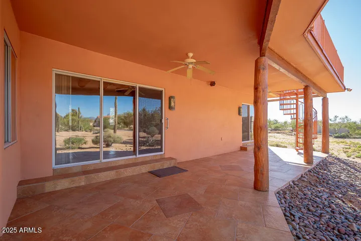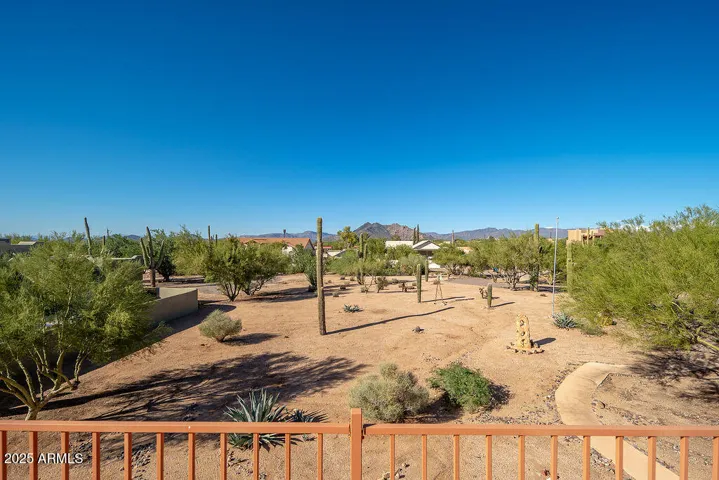 Authentic Southwest charm near Lone Mountain & Scottsdale Rd! Territorial-style home on a spacious desert lot with mountain views and classic viga-beam ceilings. Open great room with hardwood floors and kiva fireplace flows to a granite kitchen with island, double ovens and ample storage. Primary suite offers fireplace, patio access and glass-block shower. Includes two guest rooms plus a separate office/den. Enjoy a covered patio, rooftop deck for sunsets, and room for expansion or RV parking. Peaceful desert living minutes from golf, dining and shopping!