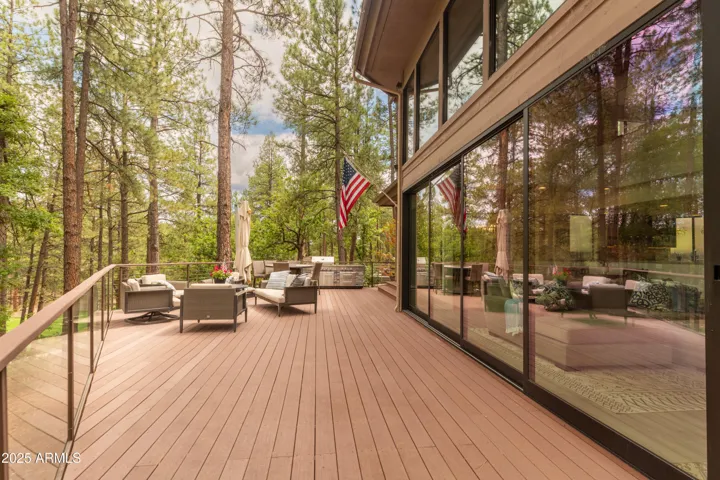 Home owner / listing agent is a licensed Real Estate Agent in Arizona. This completely remodeled home (2018) is located on one of the most spectacular view lots in all of Forest Highlands! The expansive back deck with glass railing offers views of the 14th hole and the 13th green of the renowned Forest Highlands Canyon Golf Course. Views of the SF Peaks can be seen above the tree tops. 20′ of glass doors were installed so you can enjoy the view from inside the house. Central air conditioning was installed (2018). Beautiful kitchen with all Thermador appliances. Home owner is the listing agent. Primary Bedroom downstairs, 2 bedrooms upstairs. Bed 2 has full bath with tub / shower. 3rd bed has bath with walk in shower.