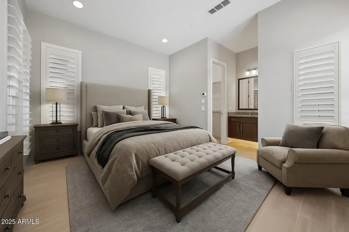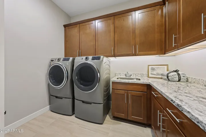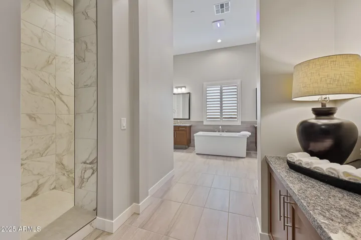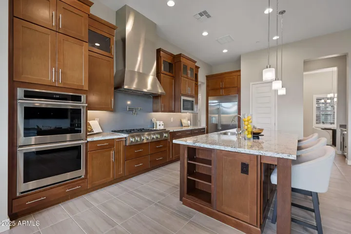 This newly constructed 7-bedroom, 6.5-bathroom home with a detached casita in the gated community of Storyrock in North Scottsdale, offers refined living on a premium private lot, with mountain views backing to NAOS. This home features custom Merillat Tolani maple cabinetry, brushed nickel finishes, upgraded porcelain tile flooring, remote control shades, shutters, surround sound, and walk-in closets in every bedroom. The chef’s kitchen has White Ice granite countertops with under-cabinet lighting, stainless appliances—6-burner gas stove with griddle, double convection ovens, smart fridge, pot filler, RO system, and a large pantry. The spacious great room boasts a gas linear fireplace, built-in shelving and wall of glass sliders looking out to the beautifully landscaped and low maintenance backyard with artificial turf. The laundry room includes a smart front-load washer/dryer, under-mount sink, and tons of cabinetry. The luxurious primary suite features a tray ceiling, patio access, his-and-hers closets, and a spa-like bath with a freestanding tub, floor-to-ceiling custom tile, dual vanities, and a Moen rain shower. All bathrooms offer upgraded tile, granite counters, LED-lit recessed cabinets, glass shower doors, and comfort-height toilets. Enjoy your private courtyard with a fireplace and TV and upgraded paver patio. With thoughtful upgrades inside and out, this home blends elegance, comfort, and function in every detail. Full Features list in Documents Tab.
