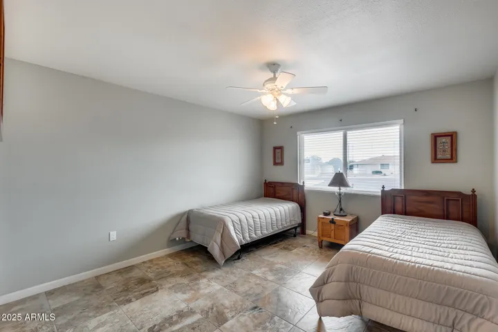 Fully remodeled 3-bed, 2-bath home in a serene adult community with PAID OFF SOLAR and NO HOA! Recent upgrades include HVAC (2017), water heater (2025), exterior paint (2020), a newer roof, an updated master bath (2023), and a new garage door. Plus, all windows come with a lifetime transferable warranty. Inside, enjoy 1,832 sqft of inviting living space featuring a family room and an Arizona room. Smooth tile flooring throughout (no carpet!) and large sunscreened windows fill the home with warmth and natural light. The kitchen is boasts granite countertops, elegant cabinetry, an eat-in kitchen, and room for formal dining. Outside, the huge 12,632 sqft cul-de-sac lot offers plenty of space to enjoy. A 2-car garage completes this incredible home—don’t miss out on this move-in-ready home!