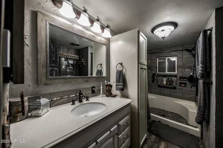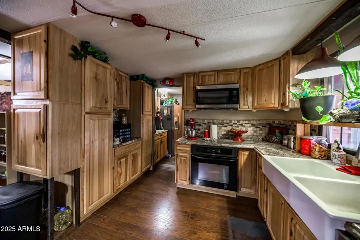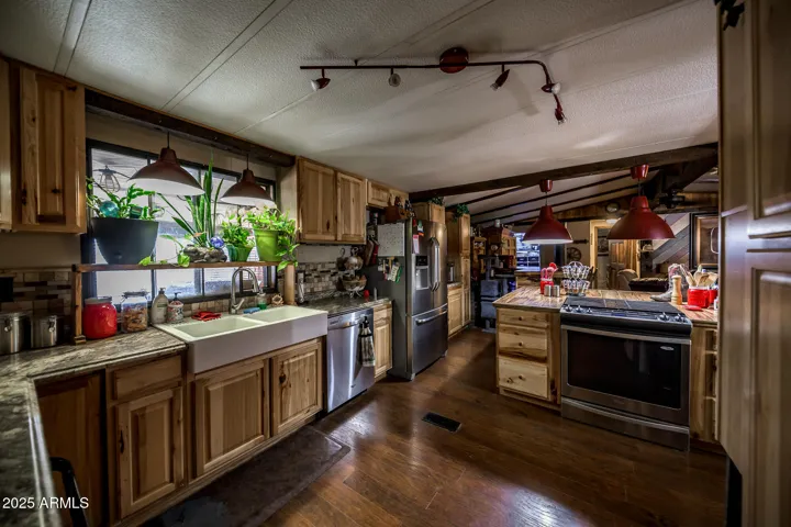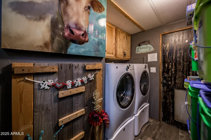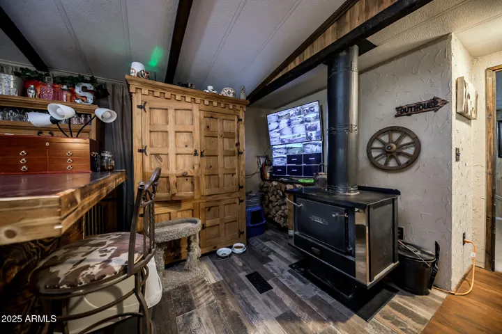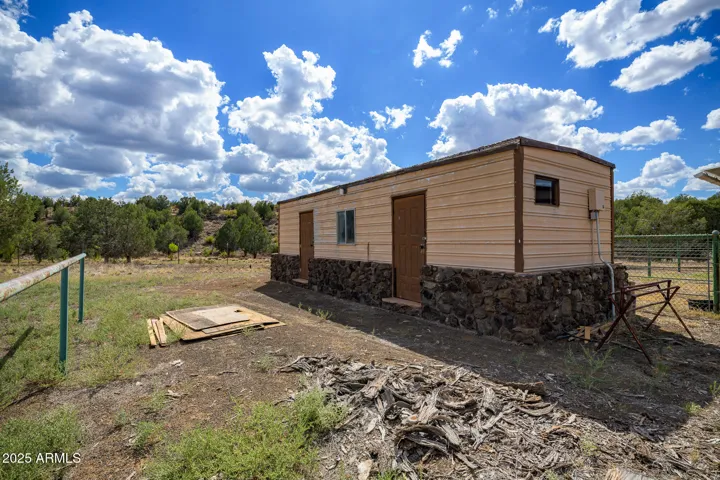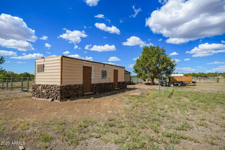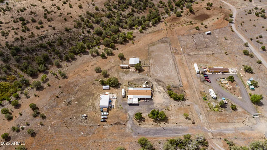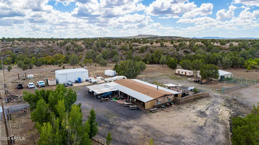 This Beautiful 20 Acre Ranch property offers cozy, spacious split 3 bdrm, 1 & 3/4 bath, primary bathroom is ada shower with grab bar and heated flooring. Large, covered patio greats you, Heat/cooled Arizona room. This amazing horse property is located on 20 acres in a secluded area of Ash Fork, nestled next to a creek with beautiful mountain views adjacent to Kaibab National Forest with many horse trails for your riding pleasure. This property has City Water and consists of 6 stalls, 100 x 300ft roping arena, electric cow-catch pen, 60ft round pen, indoor/outdoor pipe corrals, adjacent tack room and storage shed, 2700sqft RV garage includes appx 1000sqft fireproof room and an outdoor inspection pit with auto lift for repairing equipment. This property has it all to start your horse hotel.