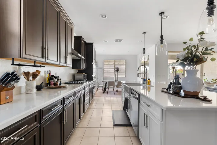 Don’t miss this rare opportunity in the desirable Harvest community in Queen Creek. Just a short walk to Olive Mill and Schnepf Farms, this 6 bedroom, 4.5 bathroom home sits on one of the largest lots in Harvest. The open layout features a gourmet kitchen, designer upgrades, and TWO private en suite bedrooms that are ideal for guests or multi-gen living. Step outside to a spacious backyard complete with a custom extended pergola and plenty of room to create your dream outdoor retreat.