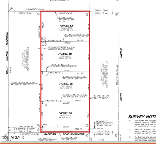 Nice flat 4 Acres already surveyed into 4 lots in a rapidly developing area of Wittmann! Great opportunity to pick up a a builder setup. Well permitting is underway, so you will be buying a property with the water solution in place. Price includes the drilled well. Access into this area is really nice, with pavement for a good stretch of it, then a rocked road the rest of the way. This is a perfect setup to put up homes in this area! This is going to be a busy street with all of the plans in place for several developments; this property will be right in the middle of all of them! Survey attached in documents. Power currently at 235th Avenue. *Has been under grazing lease, so taxes will rise.* An owner of this property hold an AZ real estate License.