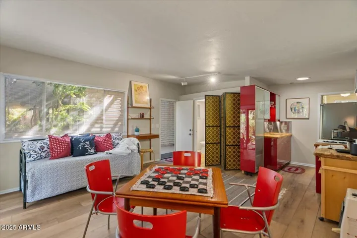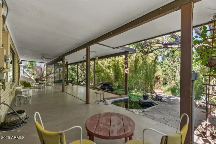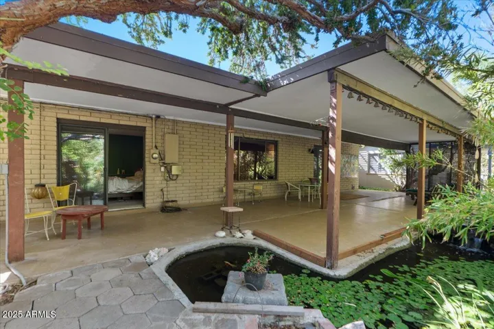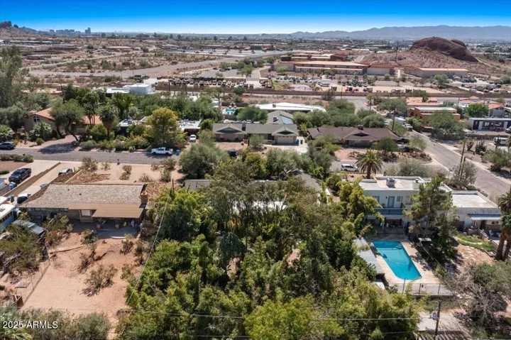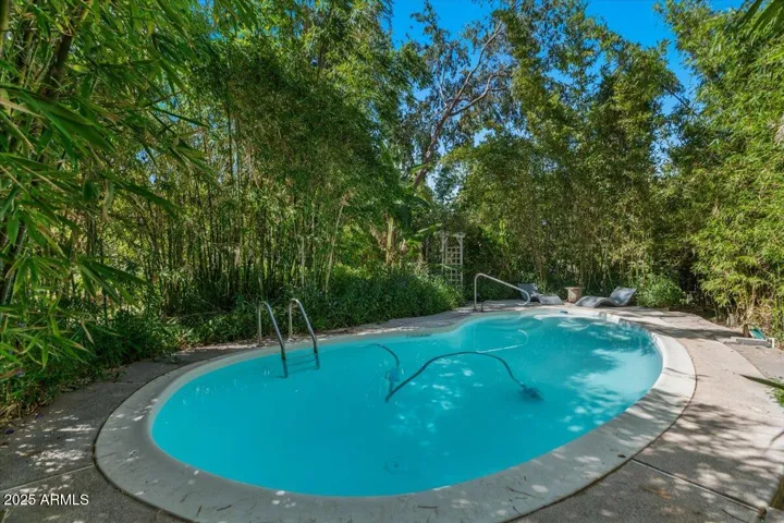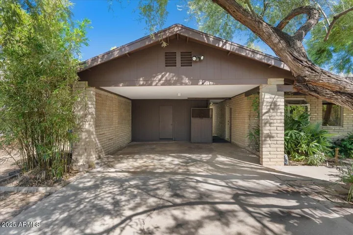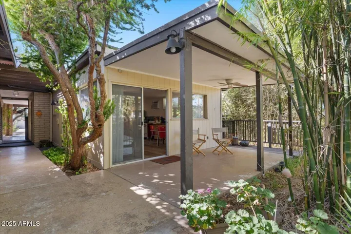 This charming residence is located in Moundview 5, near the Arcadia Corridor, Papago Park, Phoenix Zoo, Desert Botanical Garden, and the heart of Scottsdale’s fine dining and activities. With mid-century modern roots, this residence offers both artistic history and investment potential. The 3 bedroom 2 bath 1940 sq ft main home provides a canvas for updates and personalization, blending mid-century character with modern possibilities. The 387 sq ft guest house offers an additional bedroom and bathroom, is fully functional ready for rentals or multigenerational living. Set on nearly half an acre, the property showcases meandering gardens and mature plantings with bamboo, jasmine, roses, grapevines, and fruit trees including olive, Meyer lemon, pomegranate, navel orange, fig, and guava. A private pool, no HOA, and unbeatable location just minutes to Camelback Mountain, canal paths, and Arcadia’s best dining complete the picture. With its central setting just minutes to Sky Harbor, downtown Phoenix, and Scottsdale’s lifestyle destinations, this property offers endless possibility for YOUR next chapter.