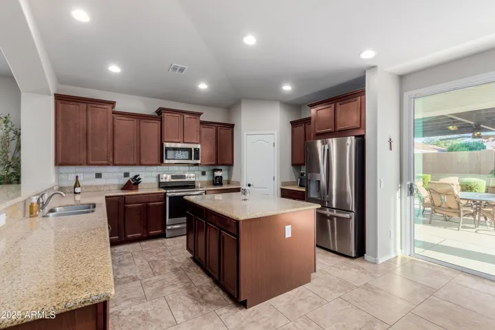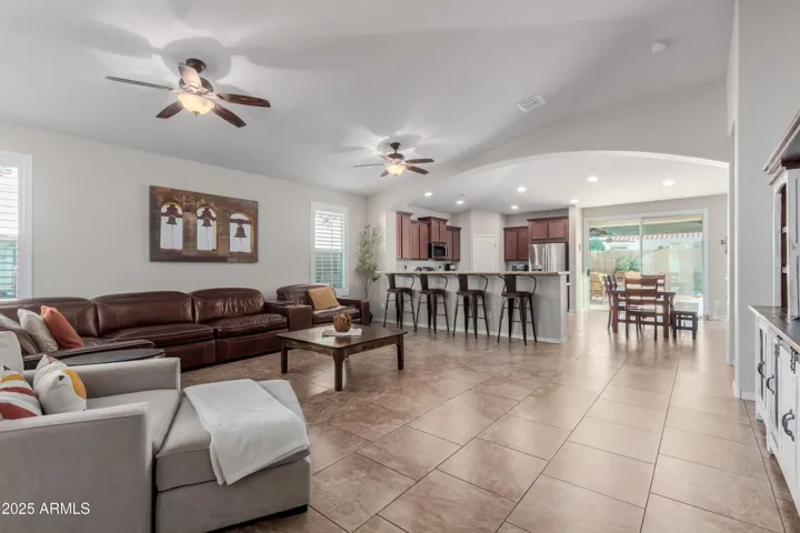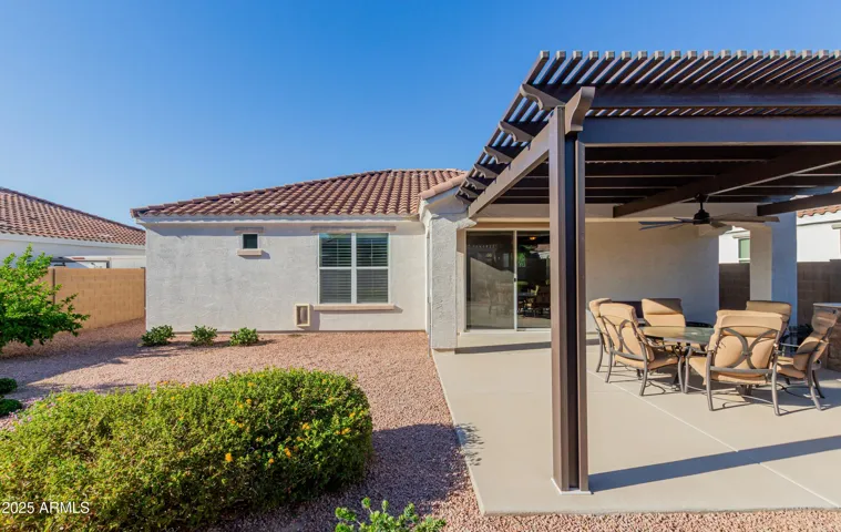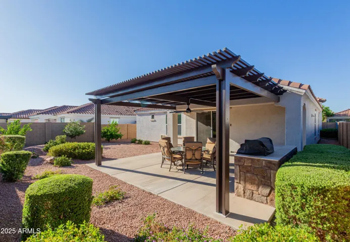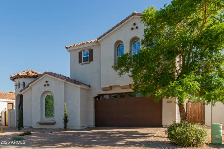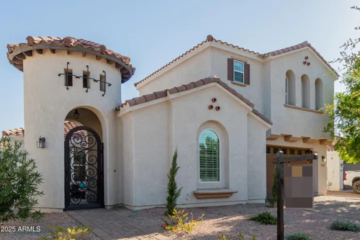 Welcome to this stunning Tuscan-style home located in the desirable La Sentiero community of Queen Creek. A brick paver driveway and wrought iron gate open to a charming courtyard with access to both the main residence and a private 1 bedroom/1 bathroom casita; perfect for guests or multigenerational living. The main home offers 2 bedrooms, 2 full bathrooms, and a spacious upstairs loft that can be used as a bonus room, office, or media space. Designer builder upgrades, the gourmet kitchen features granite countertops, a center island, a large breakfast bar, and rich finishes. The primary suite creates a spa-like retreat with a walk-in shower, dual sink vanity, and elegant mosaic tile accents. Shutters throughout. Newer Interior Paint and Newer flooring to stairs and Loft area. Step outside to enjoy Arizona living at its best in the fully landscaped backyard with a newly extended large covered patio area and pergola as well as a built in BBQ and outdoor lighting; ideal for entertaining or relaxing. Front yard landscaping just had an update as well with new plants. La Sentiero offers walking paths, playgrounds, and greenbelts, while nearby shopping, dining, and entertainment add everyday convenience. Schnepf Farms is just minutes away, and recent Rittenhouse Road improvements provide easy access in and out of the community. Don’t miss the opportunity to own this beautiful home in one of Queen Creek’s most sought-after neighborhoods!