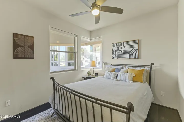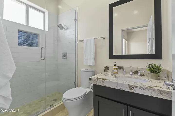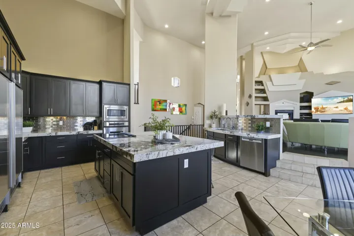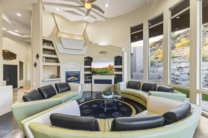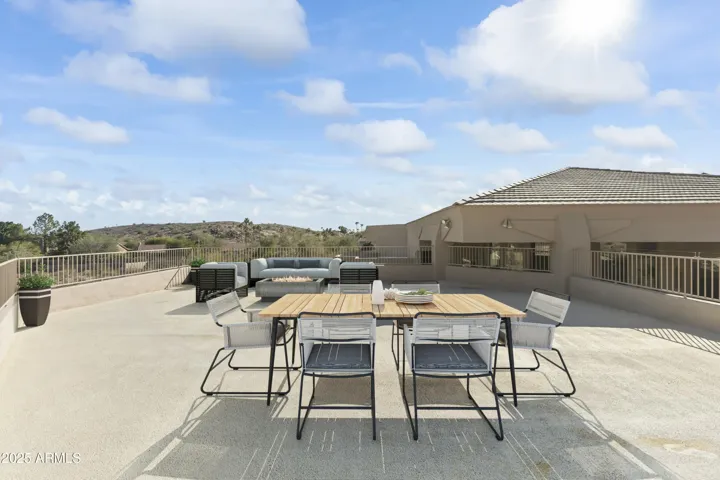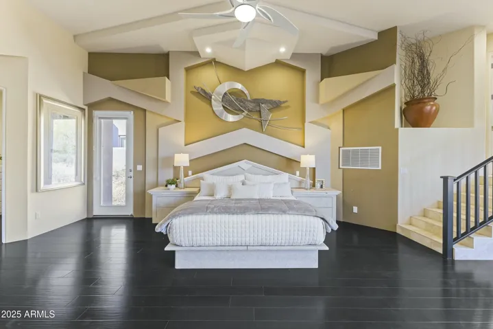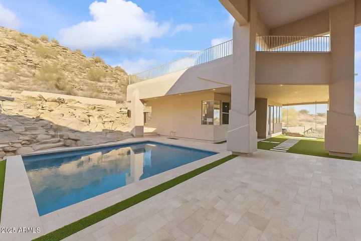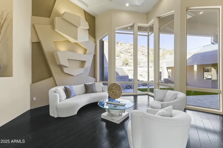 Don’t miss this rare opportunity to own a FULLY UPDATED modern desert retreat with timeless design and sweeping views of South Mountain Preserve. This stunning custom home with a 2 bedroom GUEST HOUSE is located in Ahwatukee’s GATED Canyon Reserve. Each space in the home has been REDESIGNED with CUSTOM CABINETRY, STONE COUNTERTOPS and BEAUTIFUL HARDWOOD AND TRAVERTINE FLOORING. The open-concept kitchen is perfectly appointed with two BOSCH dishwashers, DACOR oven, SUB-ZERO refrigerator, sleek espresso cabinetry, butler’s pantry and a fabulous walk-in pantry. The Primary Bedroom suite is a true retreat with 2 custom-designed closets, an EXERCISE ROOM and SWEDISH SAUNA. The spa-like primary bath has a glass-tile shower and freestanding soak tub. All secondary bedrooms are EN SUITE with walk in closets, built-in desks and private balconies. The living and family rooms are designed for comfort/entertaining and showcase FLOOR-TO-CEILING WINDOWS. The 24′ ceilings add an open-airy feel to the home. A well-equipped WET BAR serves as an elegant pass-thru area to create perfect flow. At the heart of the home is the GAME/MEDIA ROOM ideal for movie nights, game days or casual gatherings.