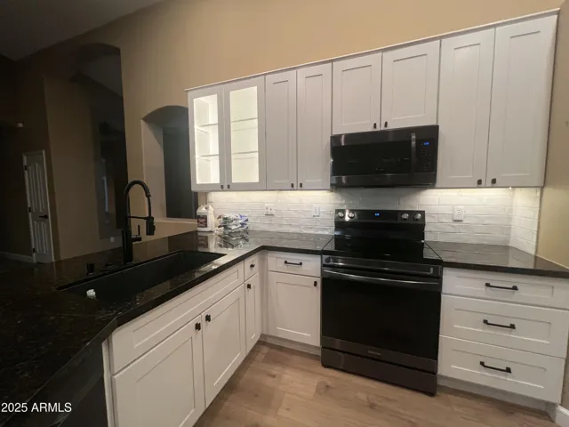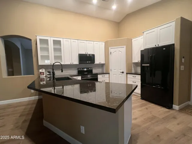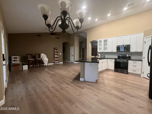 Rare find! Remodeled Horse property on 2.5 acres with amazing views of the Superstition and Goldfield Mountains for rent. Homes only area and minutes from the National Forest. Open floor plan includes new kitchen with white cabinets/granite counters, black and stainless appliances, wood laminate floors, formal living plus family room. Good size owners suite. Large laundry room with exit. Lovely courtyard entry/outdoor area facing the mountain gets afternoon shade and spectacular sunsets. Three car garage plus hay barn, covered trailer parking, stalls… everything your horses need.