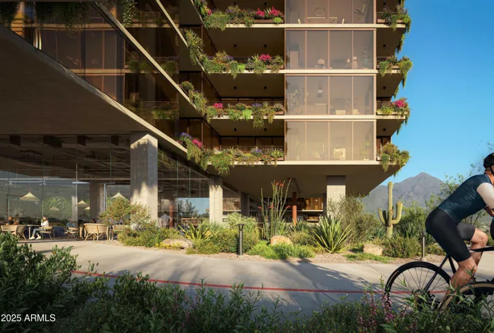 Now Selling: Optima McDowell Mountain, a new luxury condo community in North Scottsdale delivering Spring/Summer 2027. This 22-acre development offers 75% open space, six 8-story buildings, and a 10-acre central landscaped park with walking path and a putting green. This courtyard facing 1 bed features north facing views w/large balcony. Interiors feature floor-to-ceiling windows, designer kitchens with JennAir or Wolf/Sub-Zero appliances, and private terraces with lush vertical gardens. Amenities include a rooftop pool, spa & cold plunge, rooftop track, fitness center, yoga & Pilates studios, pickleball, golf simulator, party room, pet spa, and more. Walk to nearby restaurants and shops. Easy 101 access. Live an ultimate modern desert lifestyle at Optima McDowell Mountain.