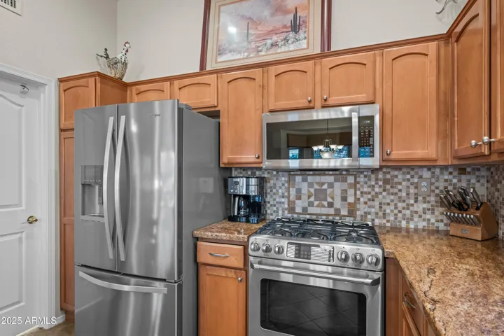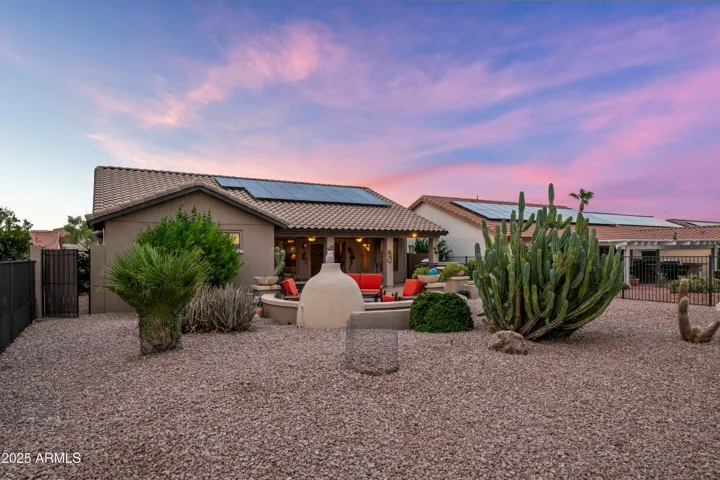 BEAUTIFUL MOUNTAIN & GOLF COURSE VIEWS…AND THE BEST SUNSET VIEWS EVER! Amazing Oversized Backyard Just Right for a Pool & Spa….with Built-In Gas Barbecue, Outdoor Adobe Fireplace, & Large Extended Patio Just Right for Entertaining! This House has All the Bells & Whistles…Including OWNED SOLAR! Walk In & be thrilled to see all the Neutral Tones throughout making you Feel right at Home….Remodeled Kitchen with Stainless Appliances, Granite Countertops, Large Oversized Square Granite Island, Gas Stove, & Neutral Tone Tile Backsplash! Many of the Windows Replaced in 2020 with Anderson Windows! Master Bath Remodeled with Custom Porcelain Tile Shower, Tile Flooring, & Granite Vanity Sink! Guest Bath Remodeled with New Vanity with Granite Countertop! Upgraded Outdoor Irrigation System, ++ Newer Paver Driveway & Walk-Ways, Newer Garage Cabinets, Epoxy Garage Floor, Water Softener, R/O System, & Large Utility Sink in Garage! Rental Commitments until April 2026 so Purchase & Scoop up the Rental Income…This is a Must Property to See…Do Not Just Drive-By…Turn Key with a House Full of Beautiful Furniture…All Located in the Scottsdale of the West….PebbleCreek Golf/Pickleball Community offering 3-18 Hole Golf Courses, 40+ Pickleball Courts, 3 Outdoor Pools, 1 Indoor Pool, Theatre, Art Center, Over 100 Clubs and So Much More!