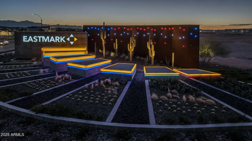 MUST SEE STUNNING EASTMARK FORMER MODEL HOME! Meticulous finishes throughout; cabinets, tile, granite, bronze hardware & light fixtures. Additional built in cabinets in dining, entertainment center & library. Kitchen includes under cabinet lighting & outlets, walk-in pantry, custom backsplash kitchen/dining, double oven/gas range. Stunning 4-panel slider opens to fully designed/landscaped backyard, featuring gas firepit & benches, turf & pavers. Garage w/epoxy flooring, water softener, tankless gas H2O heater & custom garage cabinets. Full list of builder upgrades in docs tab. Eastmark Community Center w/pool, kiddie pool, splash pad, clubhouse. Many neighborhood parks; Great Park & Skate Park, Steadfast Farms/Coffee. Designed to be turnkey for a seamless transition to your new home.