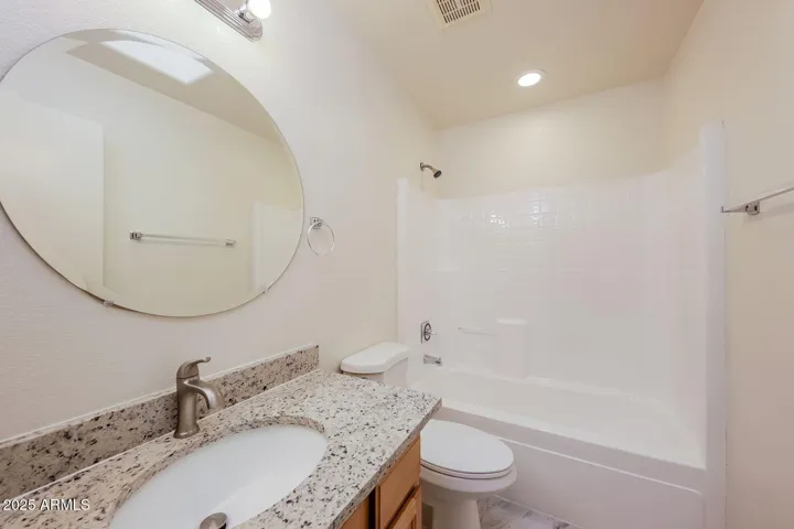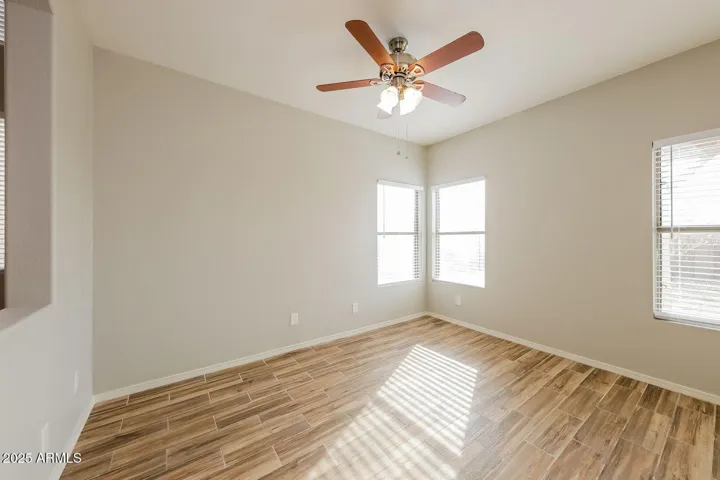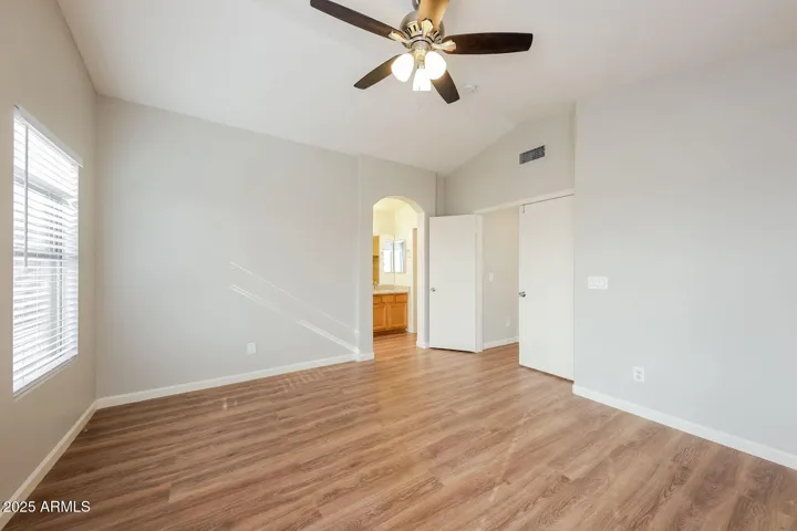 The primary suite features a walk-in closet and a private bathroom for your comfort. Outside, enjoy a low-maintenance backyard with room to garden, play, or simply unwind under Arizona’s sunny skies.