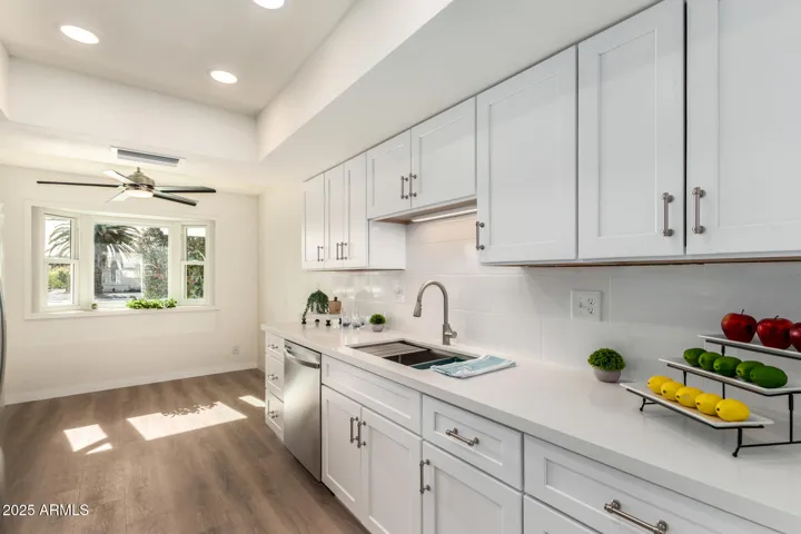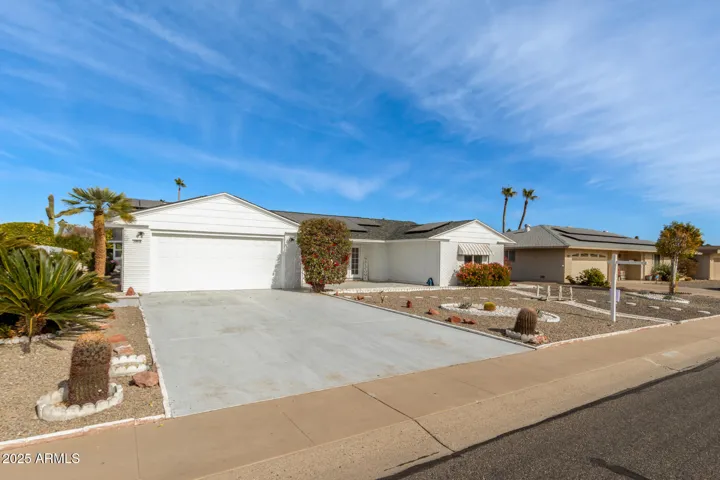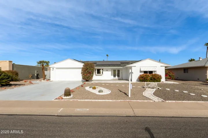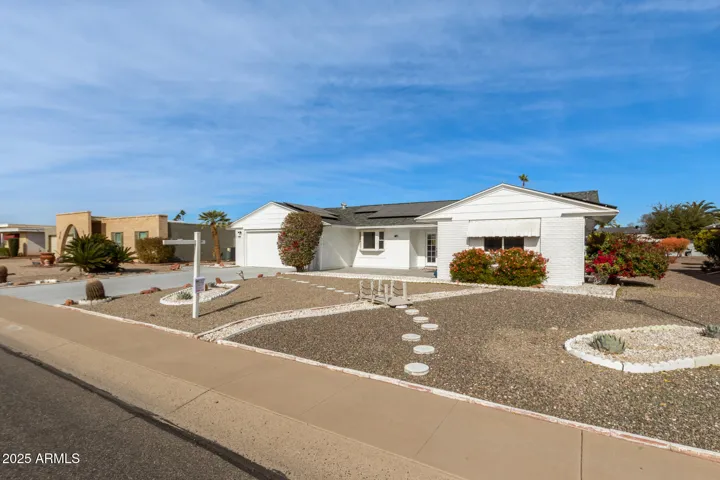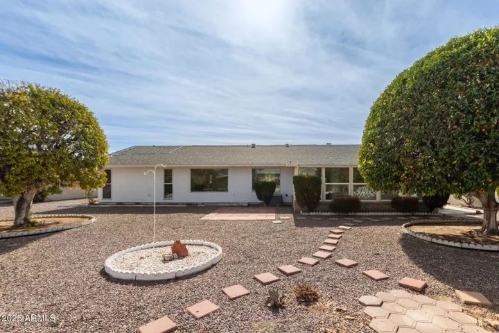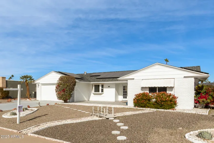 Gorgeous remodeled Georgetown floor plan! Beautiful & Updated! 3BR, 2BA in the heart of Sun City Phase 2! Close to everything! Updated kitchen features stainless steel appliances, quality cabinetry with dovetailed joinery & quartz counter tops! Enjoy your morning coffee in the dinette with pantry and bay window. Master suite is ideally located with ensuite dressing area and updated bath with shower! Guest room features the coveted Del Webb built ins and has a convenient guest bath which has been updated as well! A 3rd BR with bay window can also be an office. Arizona room has been enclosed with updated windows to lengthen your season to enjoy the outdoors! Don’t miss this beautiful property!