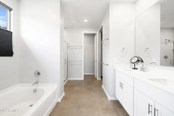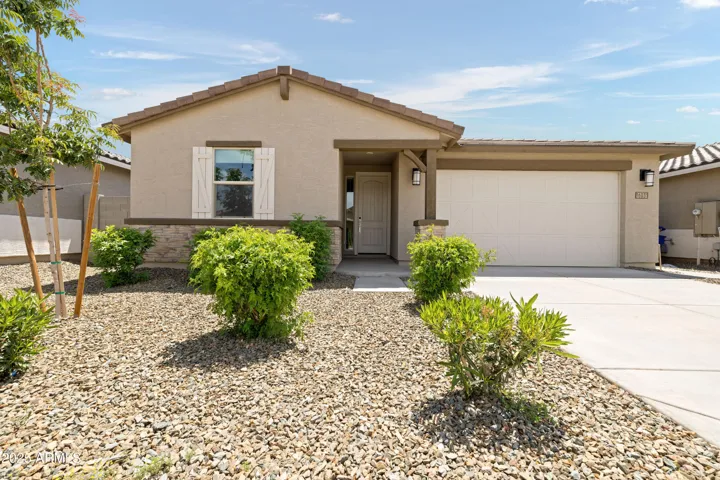 2023 Built Meritage Signature Collection at Paloma Creek with Massive Upgrades. 5.875% Assumable Loan**Ask For More Details** Upon Entry You Are Greeted With a Foyer, with Entry to 2 Bedrooms and Full Bath. Just Off The 3 Car Tandem Garage You will Find a Large Laundry Room with Built in Cabinetry, Granite Countertops and Utility Sink. The Paint Has Been Tastefully Upgraded Throughout the Home. The Massive Kitchen is Great For Entertainment and Gathering Around the Quartz Island. Tons of Cabinets, Walk In Pantry and All New Stainless Steel Appliances. Black Out Shades On All Windows to Keep the Home Cool in AZ Summers. Your Primary Suites Features Spacious Bathroom with Separate Tub and Shower, Dual Sinks, Separate Water Closet and a Generously Sized Walk- In Closet. The Backyard is