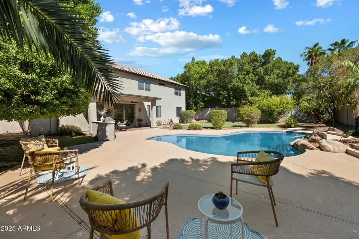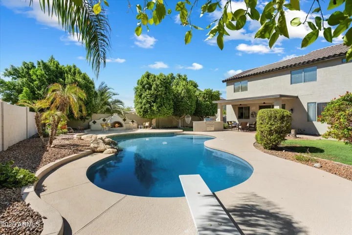 Welcome home to this 3000 sq. ft beautifully updated two-story, 4-bedroom, 3-bath home; perfectly situated on a spacious 10,000+ sq. ft. flat lot w/ stunning Red Mountain views & resort like backyard. Inside, soaring vaulted ceilings & expansive windows flood the home w/ natural light, creating a bright & airy atmosphere. The first floor boasts a formal living room & dining room, along w/upgraded kitchen featuring granite countertops, a center island, stainless steel appliances & large pantry plus eat in kitchen area. The adjoining family room provides a warm & inviting space for everyday living, plus first floor bedroom & bath w/ a convenient laundry room make it ideal. Upstairs, experience an extra family room or play area or office area as you retreat to the master bedroom suite with private bath, separate tub and shower w/large walk- in closet; alongside two additional bedrooms & one extra remodeled guest bath. Every bathroom in the home has been tastefully updated, adding comfort & modern style. Enjoy the convenience of a 3-car garage complete with built-in cabinetry & brand-new epoxy flooring. Step outside to your private backyard oasis featuring a sparkling diving pool, covered patio, built-in BBQ, and lush grassy yard w/ lots of trees great for outdoor entertaining & relaxation. Nestled in a lovely neighborhood, with school close by and right down the block. This home blends elegance, comfort, & lifestyle in one perfect package. A new roof and 2-year-old HVAC make it worry free. Don’t miss the opportunity to call it your own!