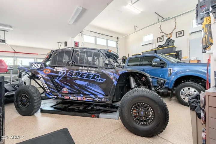 Parking and storage are unmatched with an attached 3-car garage plus an adjoining RV garage accommodating up to 4 tandem vehicles. The garages include air conditioning, epoxy flooring, 240V power receptacles, RV plug-in with sewer drop, and a rear RV garage door. A custom storage shed provides additional space for tools and equipment.