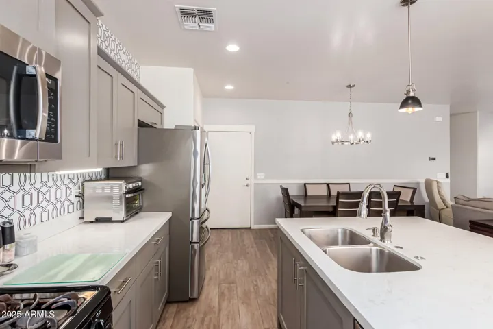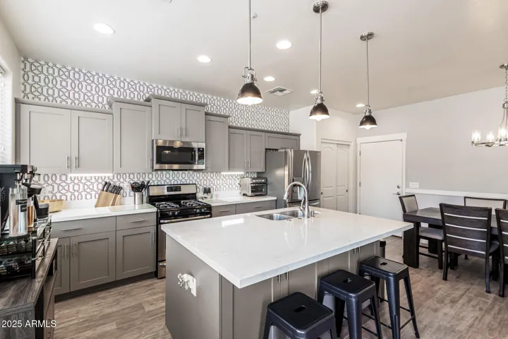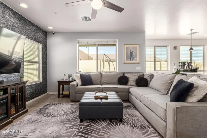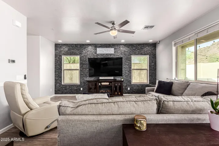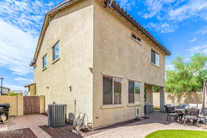 Immaculately maintained two-story home in gated Monticello! Offering 4 beds, 2.5 baths + large loft, low-care professional land- & hardscaping, fantastic curb appeal, and a 2-car garage w/ built-in cabinetry & overhead storage racks. The fabulous interior features tons of natural light, neutral paint, stylish light fixtures, wood-look tile flooring downstairs & cozy carpet in the loft and bedrooms. You’ll love the thoughtfully designed, functional open layout and custom wall treatments! The impressive kitchen boasts SS appliances, quartz counters, a pantry, staggered shaker cabinets, & an island w/ extra storage & breakfast bar. All bedrooms await upstairs, along with a spacious flexible loft. The main bedroom has an ensuite with dual sinks, linen & walk-in closets. 2nd upstairs bathroom also has dual sinks. Upstairs laundry! This home boasts the largest lot in the entire community, with no neighbors behind or to the north. The large low-maintenance yard offers a covered patio, pavers, and artificial turf. Instantly set a festive mood with app-controlled permanently installed exterior lighting. Community pool, spa, BBQ area, and green spaces. PLUS! Sits amidst picturesque mountain views you can enjoy from your living room, creating a serene backdrop for everyday living. Situated just off the 202 for ultimate convenience, and close to hiking, river, and lake recreation, what more can you ask for?!
