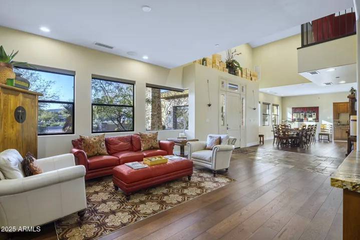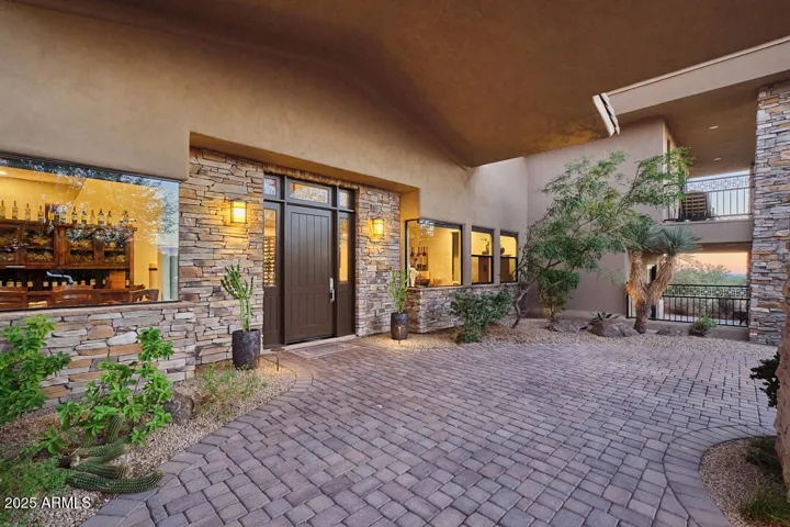 Attention Car Collectors and Wine Enthusiasts!!! This home has exactly what you are looking for! This highly upgraded home homes boasts exceptional mountain views, elevated star gazing and sweeping sunsets from its wrap around patios which overlook the resort style pool and spa. As you step inside this multi-generational home you be impressed by the 900 bottle glass wine cellar, intimate home theater, wet bar, and mezzanine game room. The spacious kitchen features all of the high end SubZero, Viking and Wolf appliances. The light filled primary suite has direct patio and pool access, glass shower, soaking tub, and spacious closet. There are 4 additional guest ensuite bedrooms in addition to a 2 level attached quest casita. Each quest room has its own patio that overlooks the serene desert The sprawling patio features a fireplace, pool bathroom with shower and a full outdoor kitchen with a huge grill, pizza oven and a Big Green Egg. The car collector’s DREAM GARAGE has room for at least 6 cars and more with lifts. Design what fits your needs in the 30ft x 60 ft space with a 13 ft ceiling height.