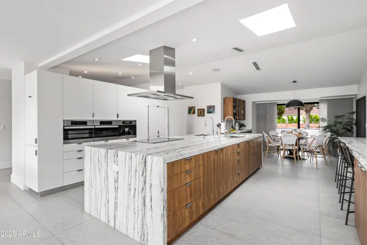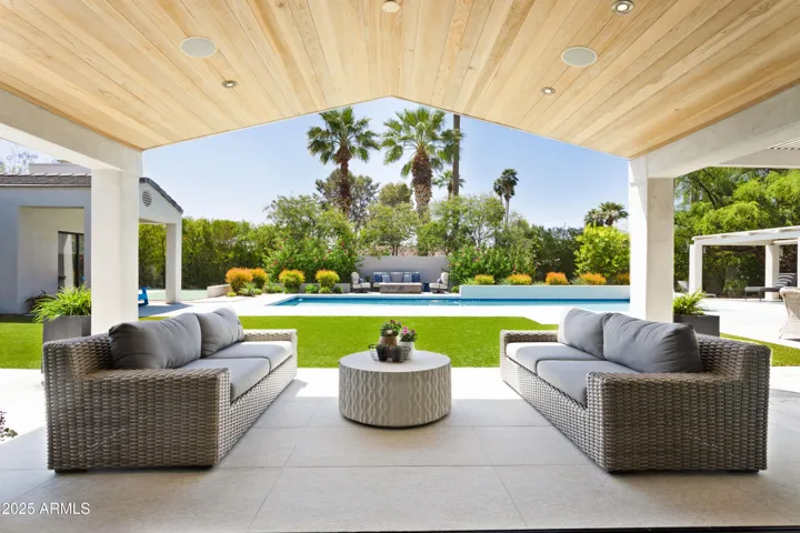 Located in the coveted Hopi School District, this stunning Arcadia home is perfectly positioned on a quiet and desirable stretch of Exeter, one of the neighborhood’s most iconic and prestigious streets. Nestled on a rare half-acre lot in Arcadia Proper, this meticulously maintained, turn-key property represents an incredible value. Rarely does a home of this size, quality, and location come to market at this price point. Thoughtfully designed for modern living and effortless entertaining, the home offers seamless indoor/outdoor flow with expansive sliding doors that open to multiple private patios and breathtaking Camelback Mountain views. The outdoor spaces feature a heated pool with newly refinished Kool decking, expansive entertaining areas, artificial turf, a built-in BBQ, and a sport court, all centered around a spacious covered patio ideal for gathering with family and friends. Inside, the chef’s kitchen is a true standout, boasting two 14-foot islands topped with honed marble, a full back kitchen, paneled Thermador refrigerator and freezer, Miele ovens, a built-in espresso maker, and dual dishwashersperfect for both everyday use and hosting on a grand scale. The floor plan is very functional including a luxurious primary suite, four generously sized guest suites, and a versatile flex space with direct access to the backyard, offering true indoor/outdoor living. The home has been meticulously cared for, with thoughtful updates that include a newer roof and HVAC systems. Additional features include a Control4 home automation system, whole-house water filtration, air cleaners, generous interior storage, and a spacious three-car side-entry garage with built-in cabinetry. Blending timeless Arcadia charm with modern amenities and top-tier finishes, this home delivers the perfect combination of comfort, style, and functionality in one of the most desirable locations in all of Phoenix.