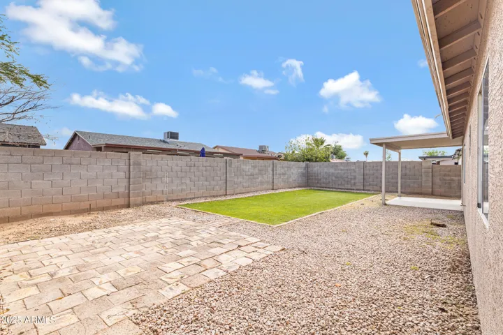 The backyard is perfect for Arizona living, offering a covered patio and low-maintenance turf ideal for relaxing or hosting. Directly across the street, enjoy the wide-open spaces of Lindo Park, a neighborhood favorite.