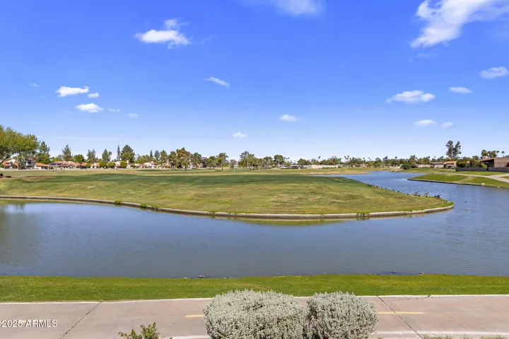 Waterfront! Rare Opportunity to own a waterfront and golf lot without the golf balls. Incredible views from the Living Room, Primary Bedroom & breakfast nook. The backyard has direct access to over 14 miles of multi-use paths for riding bikes or leisurely walks. The Santa Fe community is located in the heart of McCormick Ranch near the best restaurants, entertainment and shopping. Waterfront/Golf lots do not hit the market often in this community. The home itself has been well cared for and is available furnished via separate bill of sale. OR you can update it exactly the way you want. Roof recoated in 2024. The community pool, clubhouse and exercise room are just a few homes away. HOA takes care of front landscaping and front exterior painting. Enjoy!!
